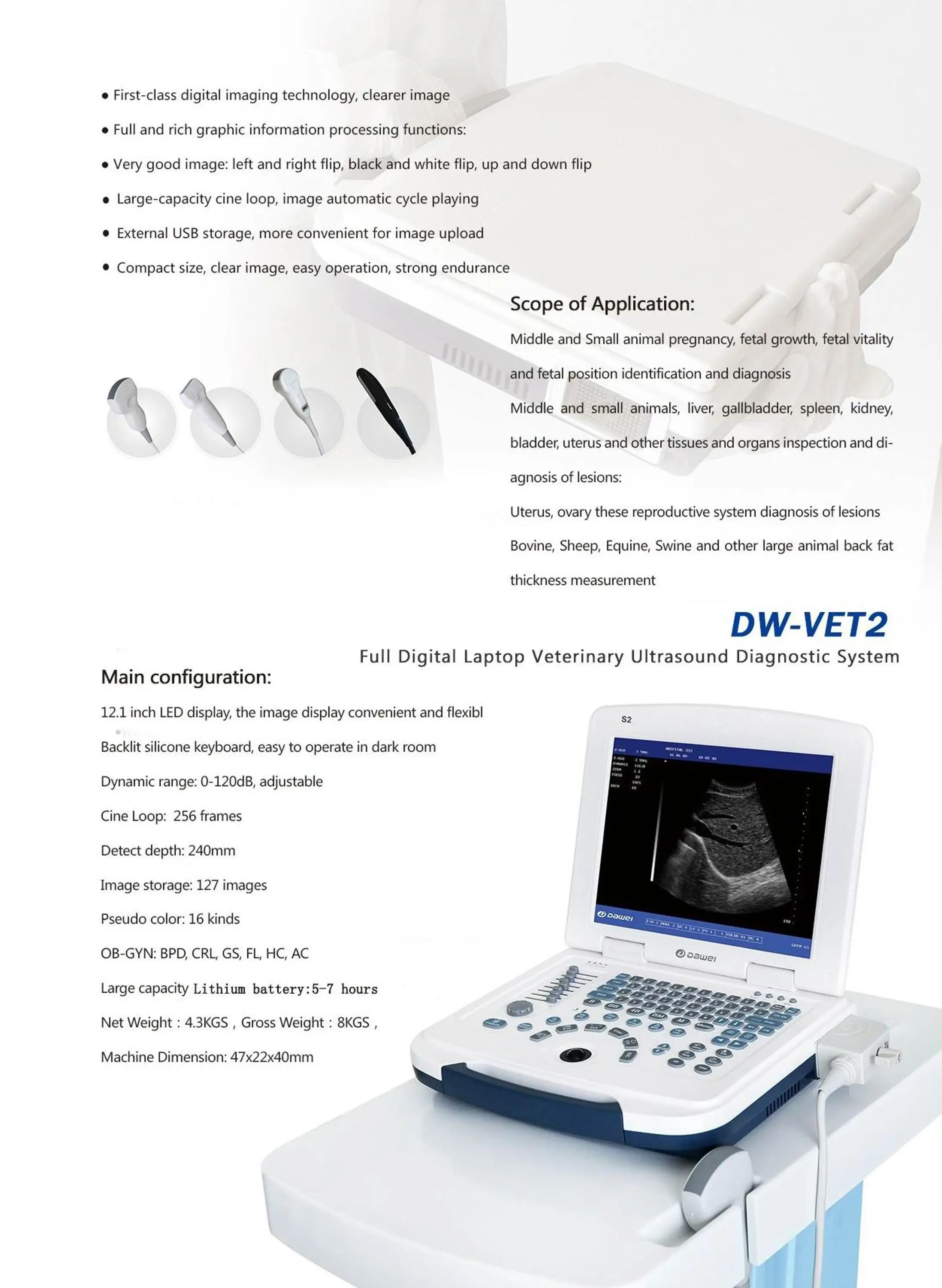 DW-VET2 factory sale directly hot sale low price with good quality portable laptop Pets Veterinary Full Digital Ultrasound