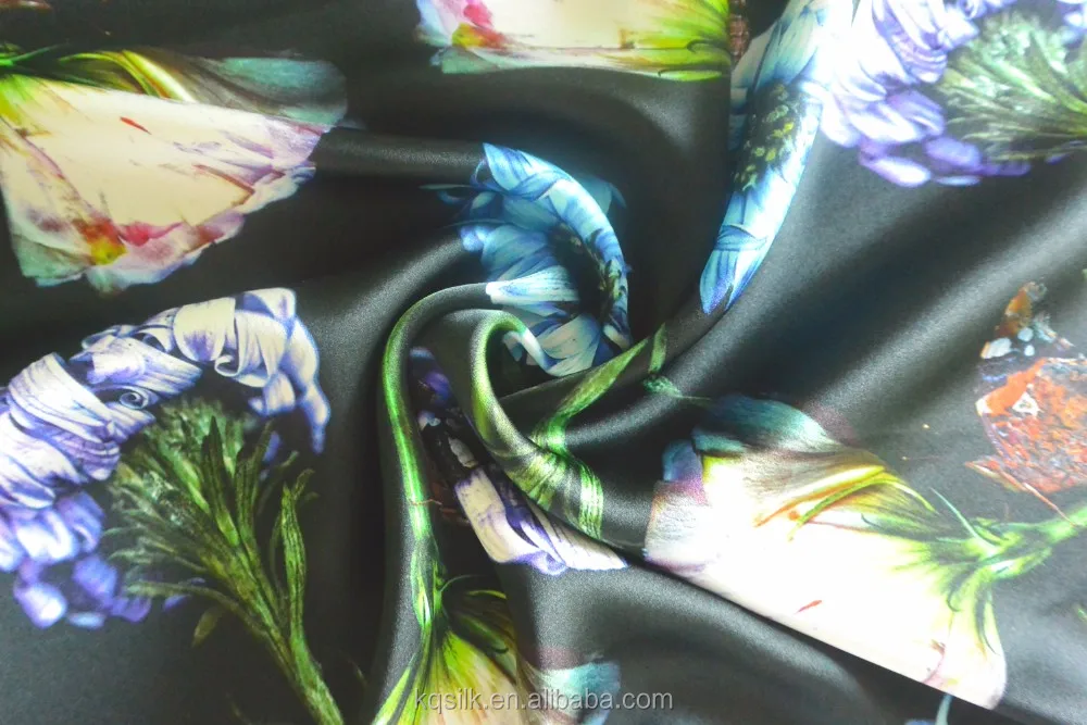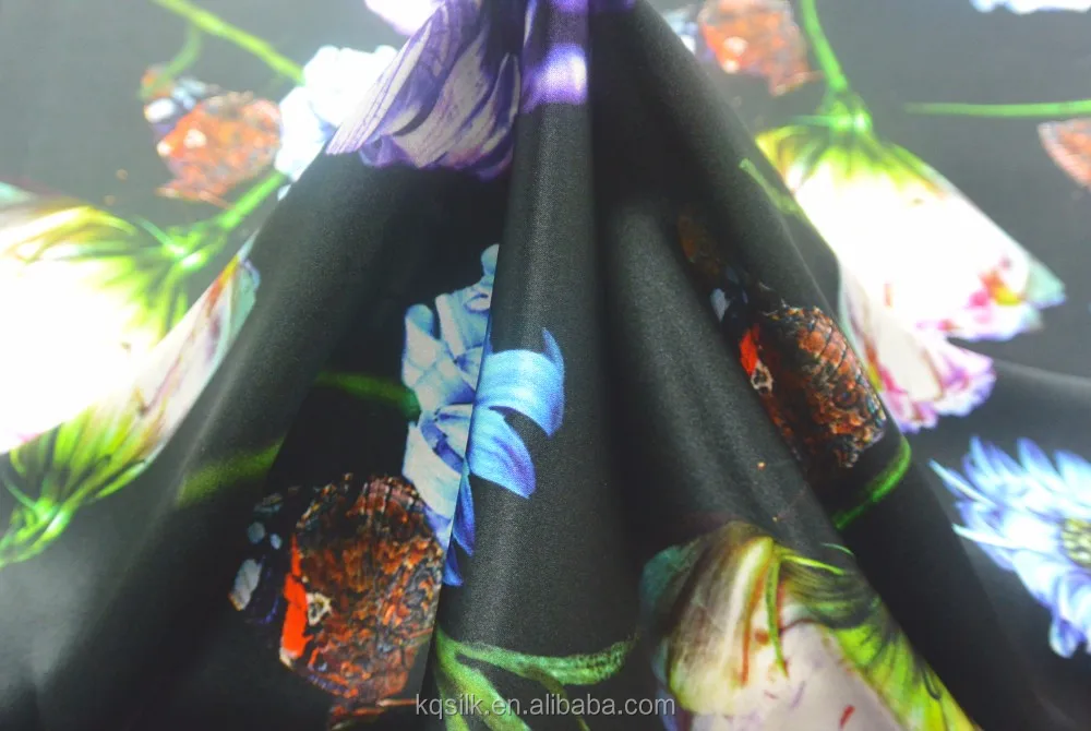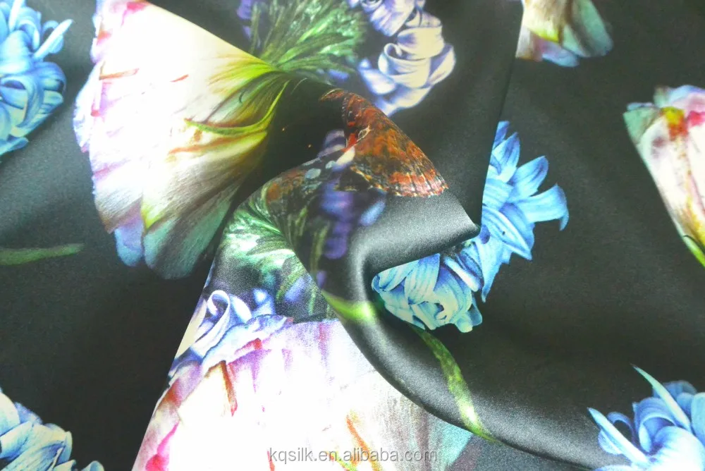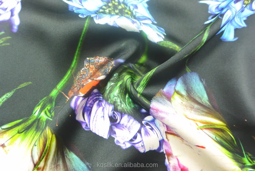 | 1.Product | Hot Sale Silk Satin Fabric Wholesale Butterfly Floral Digital Printing Fabric Black Silk Satin for Dress | Scarf16 MM |