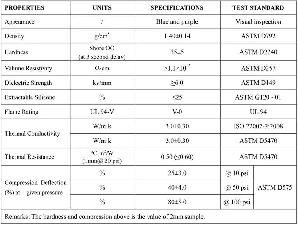 SY-GP 300S25 thermal pad has very low deformation force, the shape variable can be up to 90%,it has perfect heat conduction performance and compliance, it can fill the gap and conduct the heat from the generation part to radiation part.