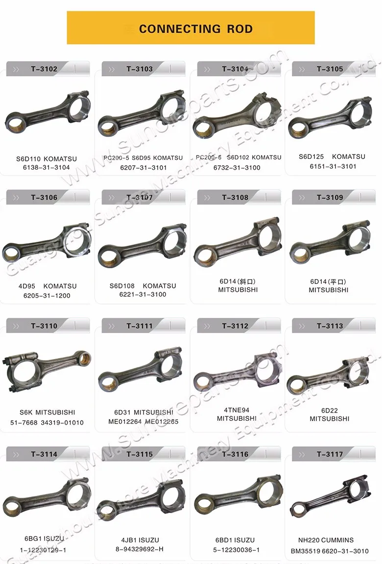 Piston liner kits, cylinder block ,cylinder head, crankshaft &camshaft, starter motor, alternator , turbocharger,oil pump water pump, fuel injection pump.