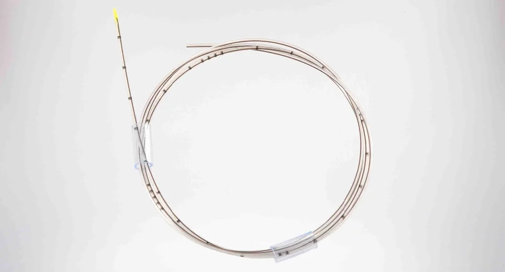 Compared to the normal epidural catheter, the front tip of our catheter using patent technology make the soft tip, so that the body is a hard and front is soft, the doctor will be very easy to put in the catheter in right area and also the front tip will not cause any damage to the epidural cavity. Our catheter has a total of four holes, the side has three holes and another one in the top.