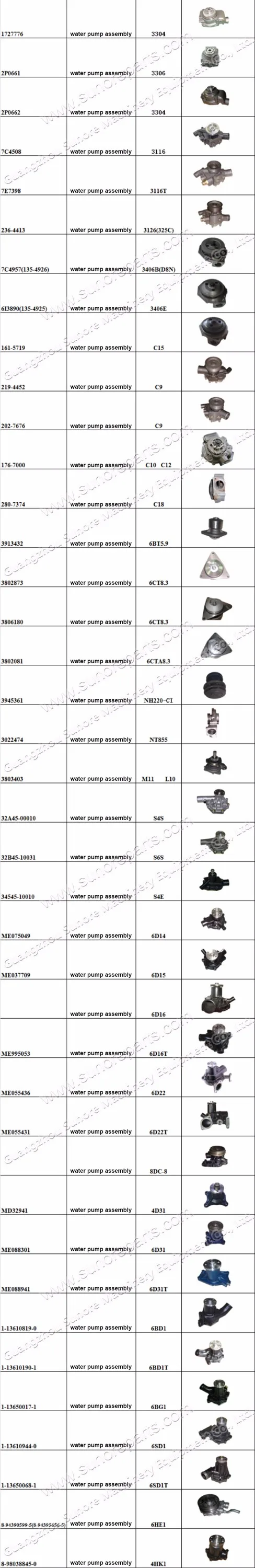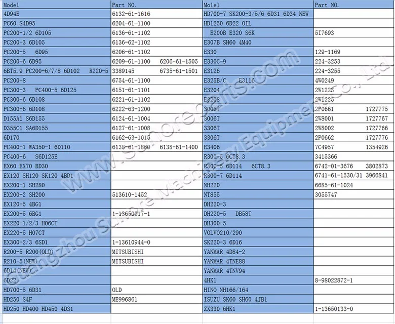 Piston liner kits, cylinder block ,cylinder head, crankshaft &camshaft, starter motor, alternator , turbocharger,oil pump water pump, fuel injection pump.