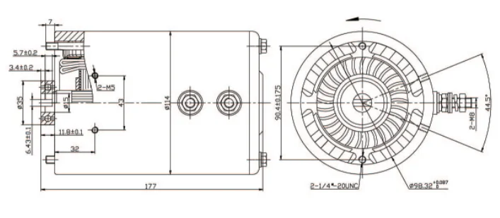 Outline Dimension of Brush 24v DC 2.2kw Hydraulic motor for oil pump