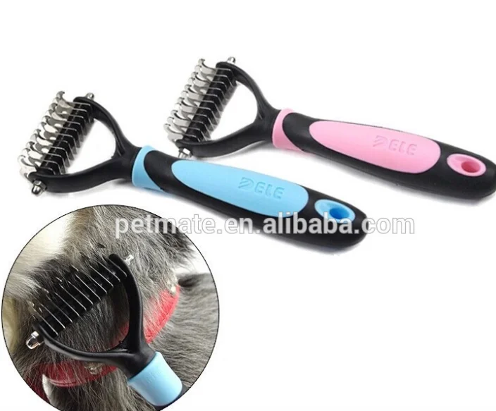 2.Double sided dog dematting comb with blades help pet hair removal brush easily.