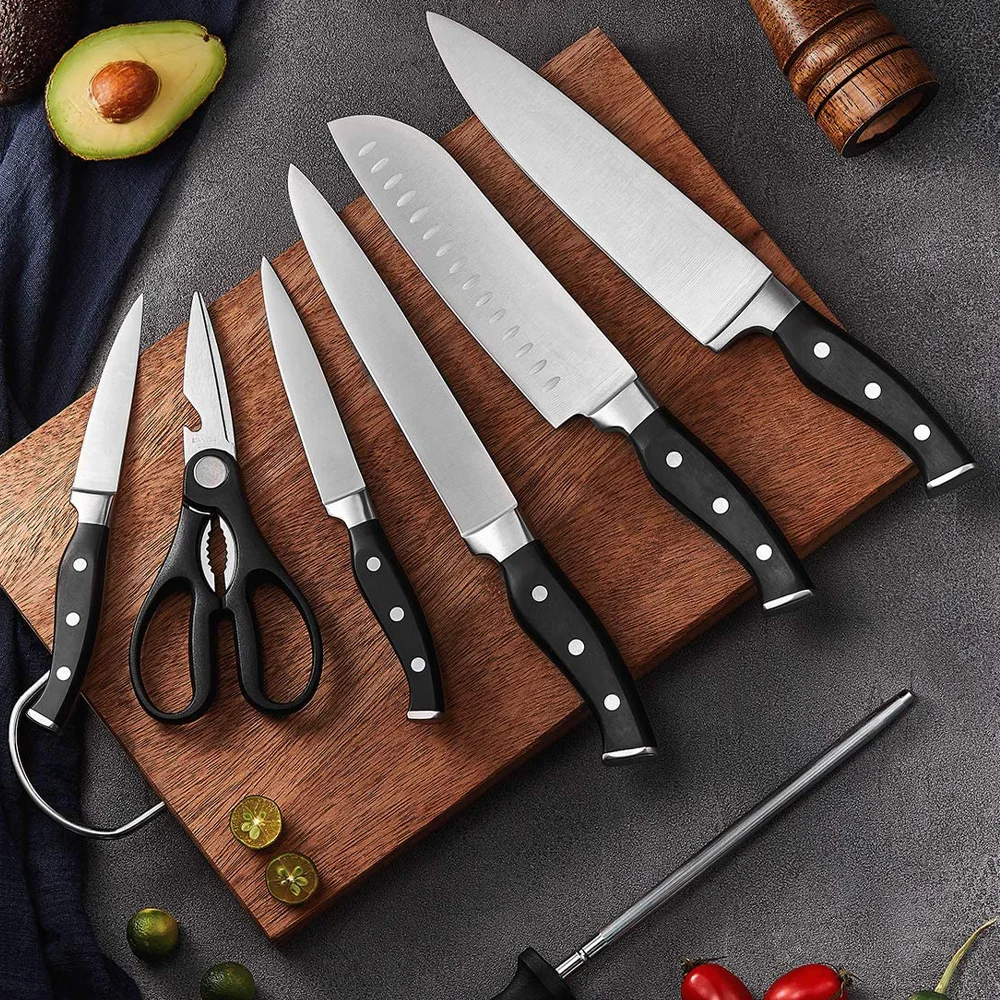 Product Name: | Professional Custom Stainless steel Kitchen knife set for Chef carving cooking knives Super Sharp with wooden block | ||||||