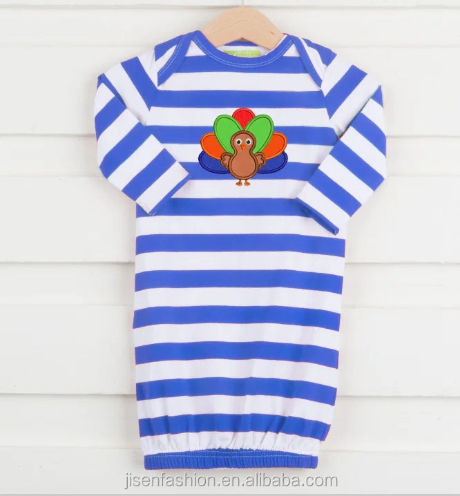 | Product Name: | turkey applique boy day gown blue knit stripe baby silk pajamas |