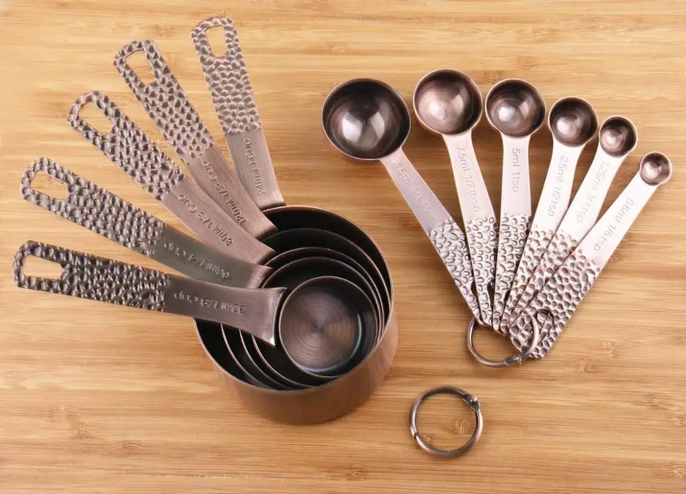 4PCS Gold Stainless Steel Hammered Measuring Cup with Measuring Spoon