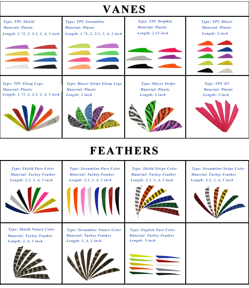| Vanes: | 5"Shield feather |