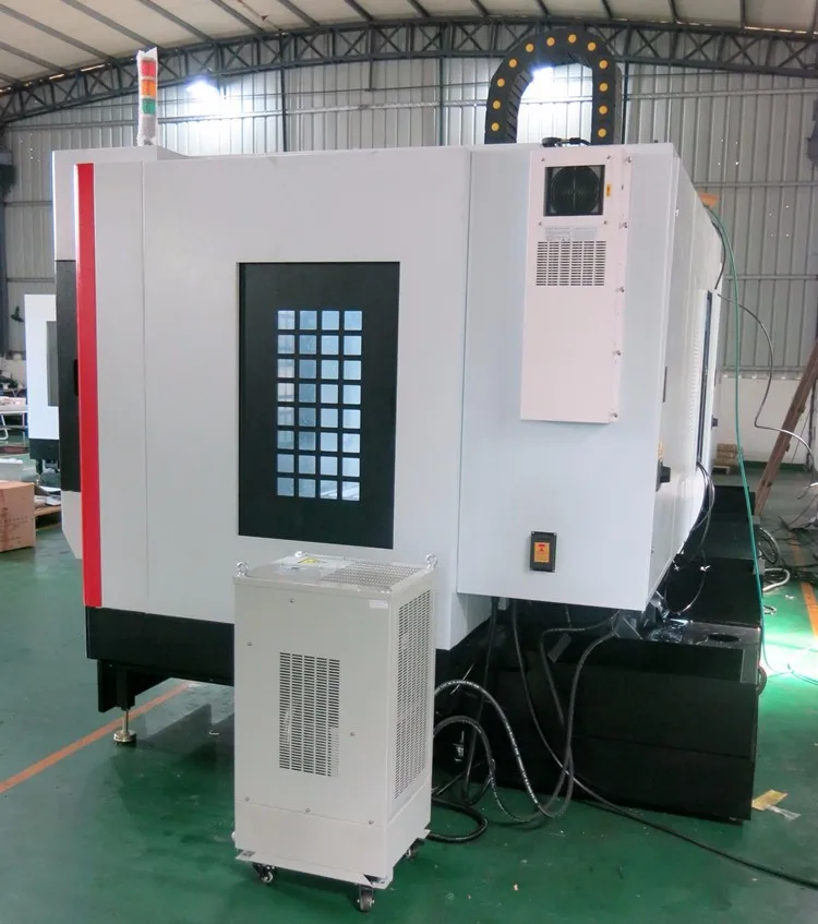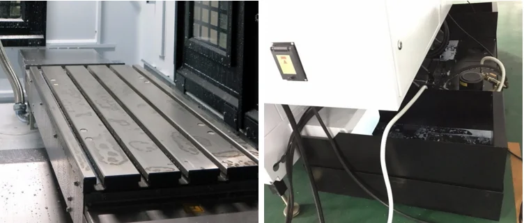 The machine is equipped with an automatic tool changer system (ATC), automatic lubrication system, cooling system and portable manually operated device (MPG), with the overall shield.Machine is equipped with fully enclosed protective cover, beautiful, safe, leak-proof, protection of the environment. Sealed guard rails shield is purchased from Taiwan brand-name manufacturers products, effective protection rails and screw moving parts, extending its useful life.Spiral automatic chip conveyor is simple, environmentally friendly, suitable for metal and nonmetal chip transport.