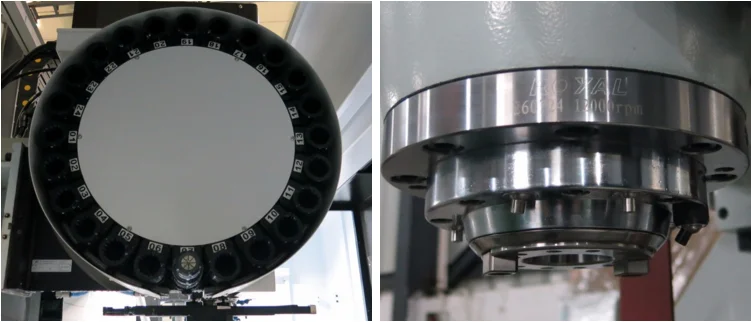 Machine with manual air (water) gun (optional) , easy to remove iron.It can install 4th axes or 5th axes. The spindle is Taiwwan 8000/12000 rpm spindle Bt 40. Normally the machine will be with arm type tool magazine with 24 tools capacity.