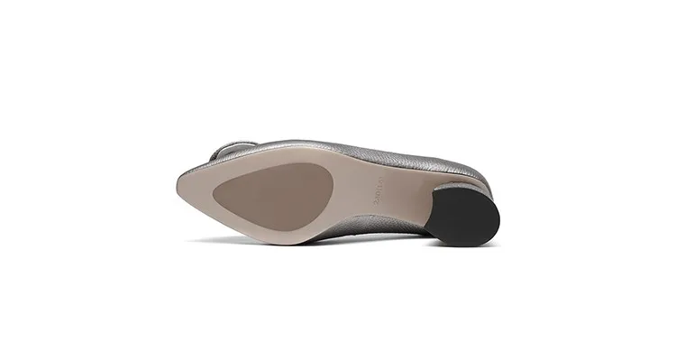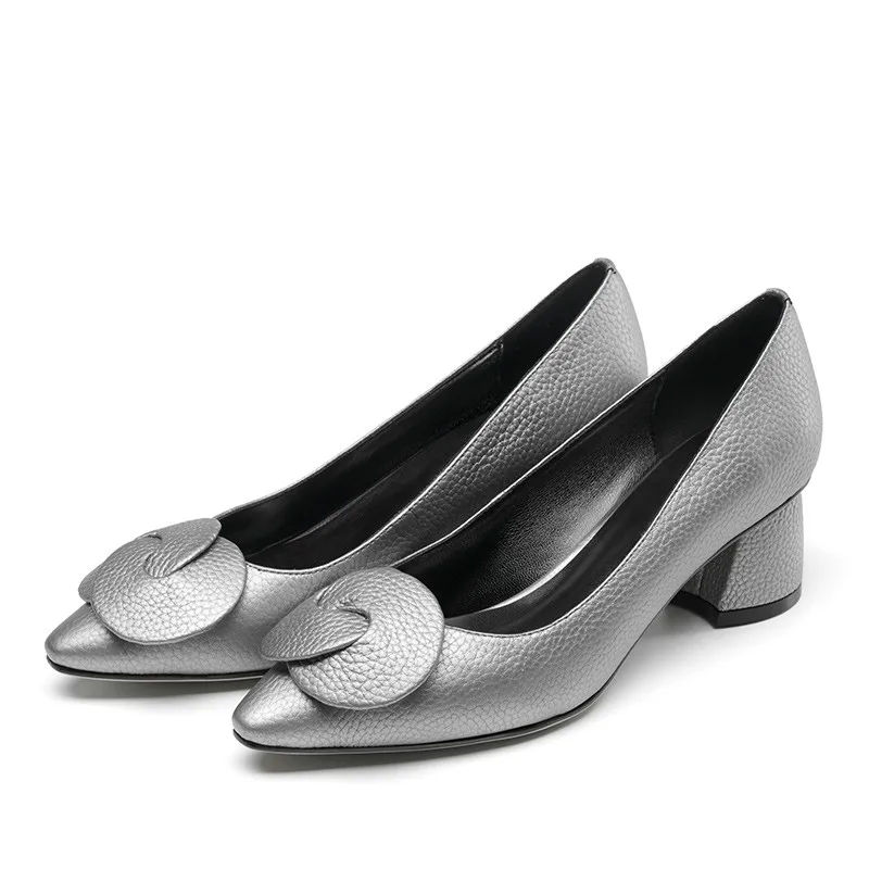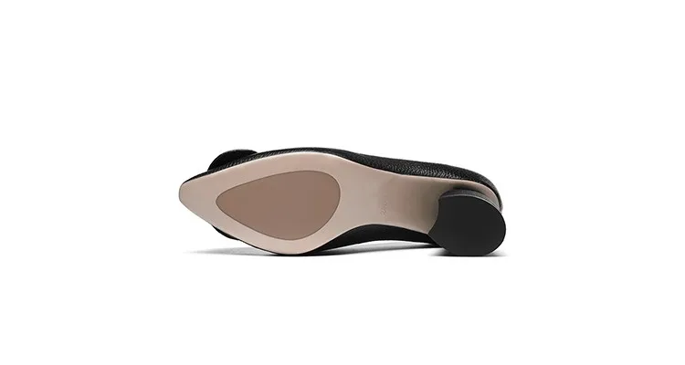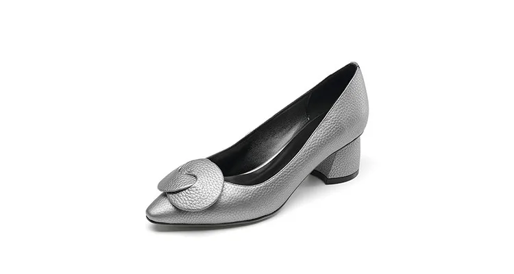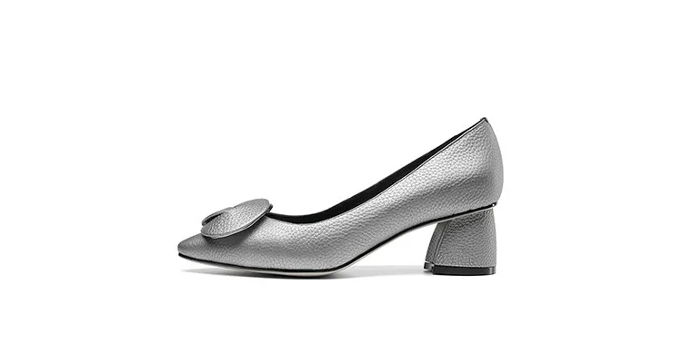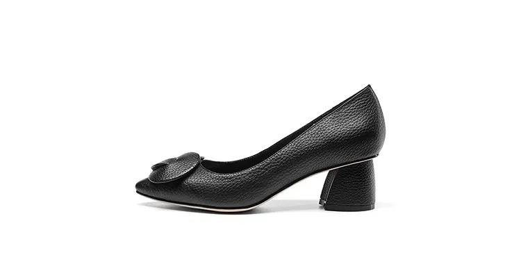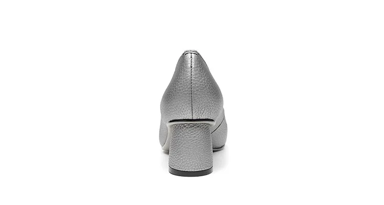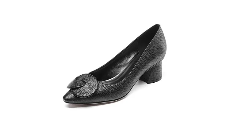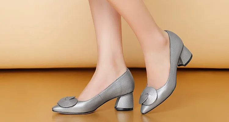 G028 Elegant Autumn Square Heel Lady Shoes Genuine Leather Med Heel Pumps