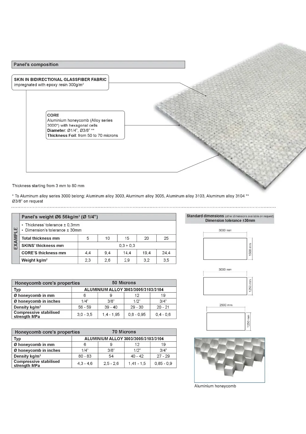 This panel offers unique characteristics since it combines lightweight with high mechanical properties. The application of this panel for example permits huge savings as far as weight and thickness of natural stones slabs, such as marbles and granite and mosaics are concerned. In this way, also the costs of these materials can be reduced.