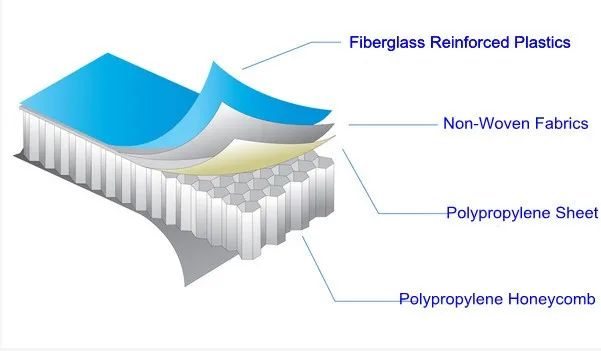 The Fiberglass Honeycomb Composite Panel has fiberglass skin (gel coated or rough surfaces for further lamination) on both sides. The materials of the panel are highly durable and have a number of unique features, such as: