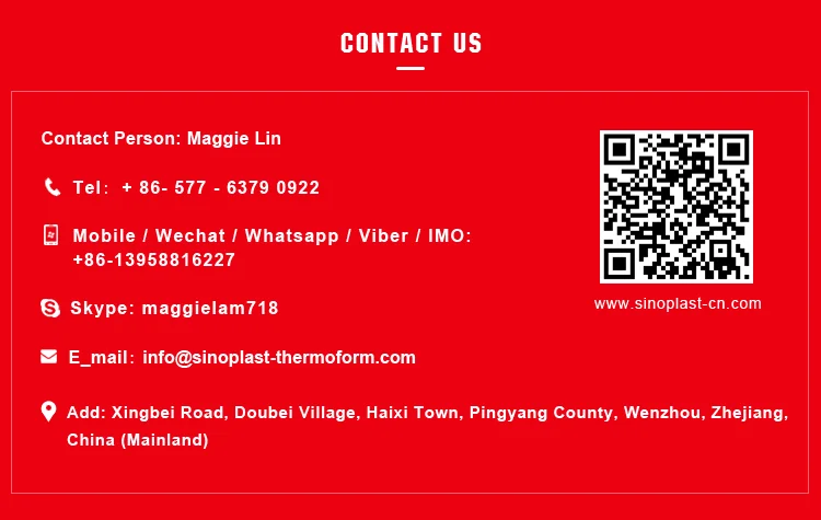 Pingyang Sinoplast Machinery Co.,LTD is a full service manufacturing company and willing to supply mould, plastic cup making machine,thermoforming machine,vacuum forming machine,printing machine, eps foam sheet extruder,auxiliary machine and other machineries in mechanical industry.We produce many different types products for your selection.
