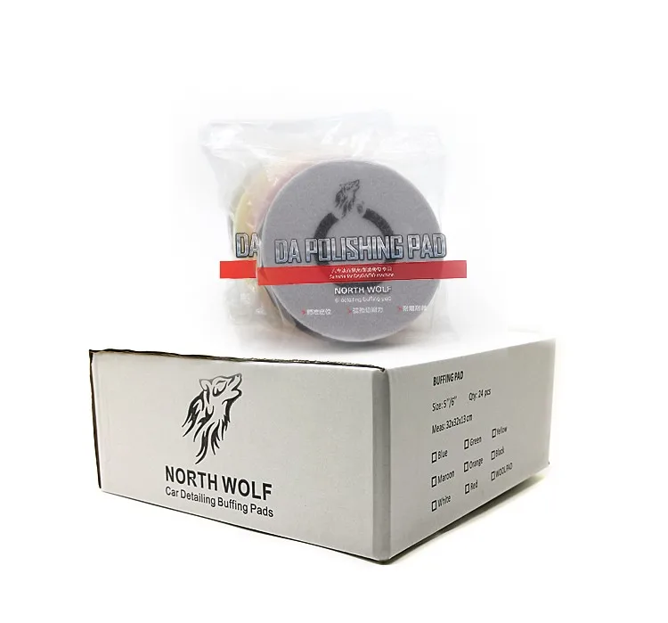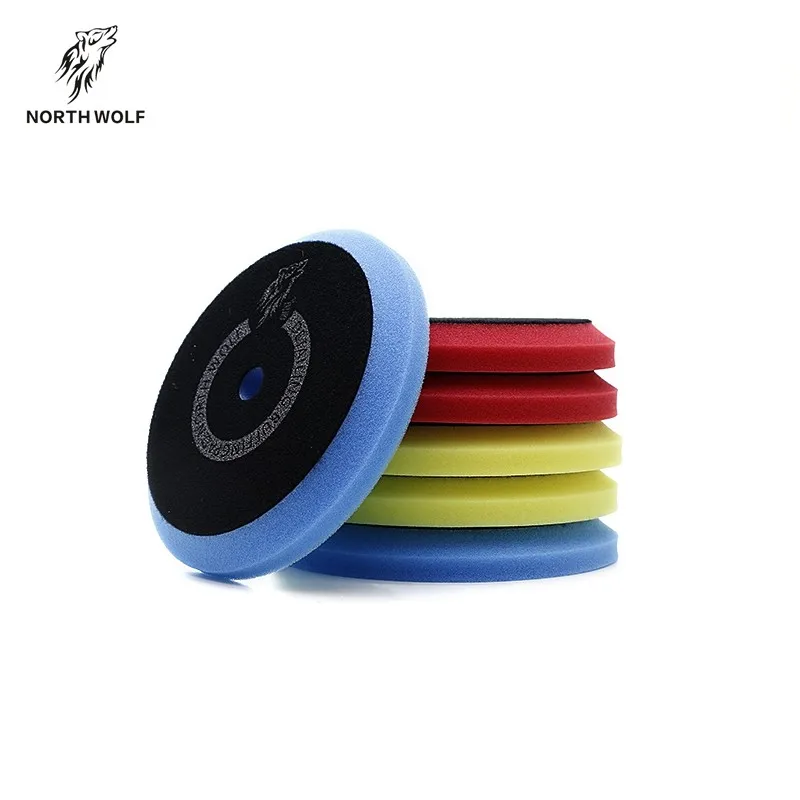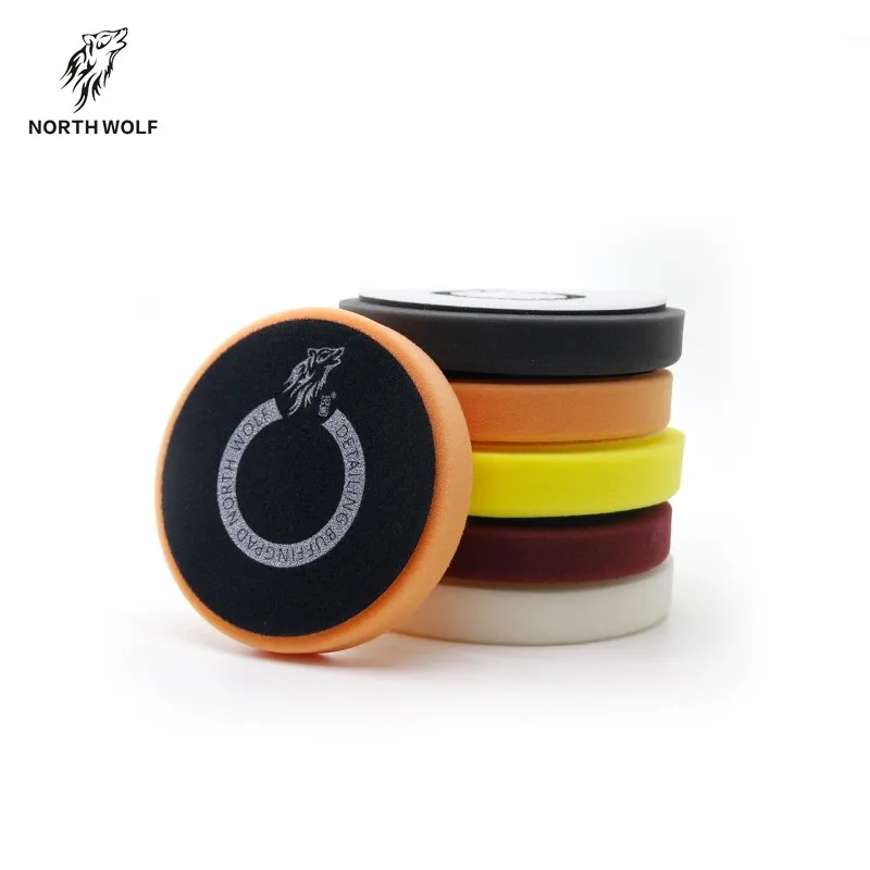 North Wolf Flat Foam Buffing Pad Kit , 3 step polishing kit , traditional flat pad design is popular with detailers , durable open cell foam material ,150mm adhesive hook and loop suggest to apply with 6'' backing plate on rotary buffers. One kit include 3pcs pad.