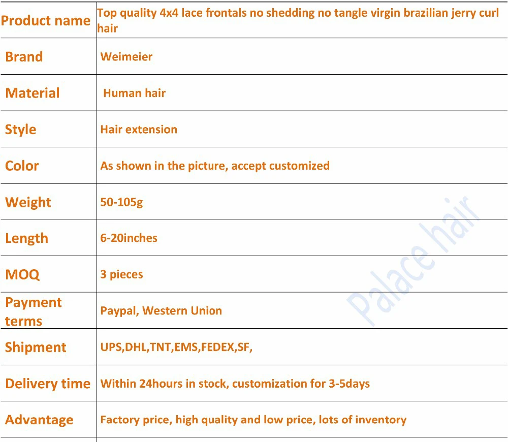 Top quality 4x4 lace frontals no shedding no tangle virgin brazilian jerry curl hair