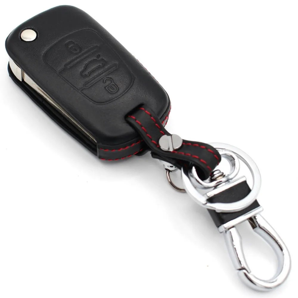 leather Car Key Cover Case Holder For k3 k5 Sorento Carens smart 3 Butoons Folding Flip Remote Key Fob Shell