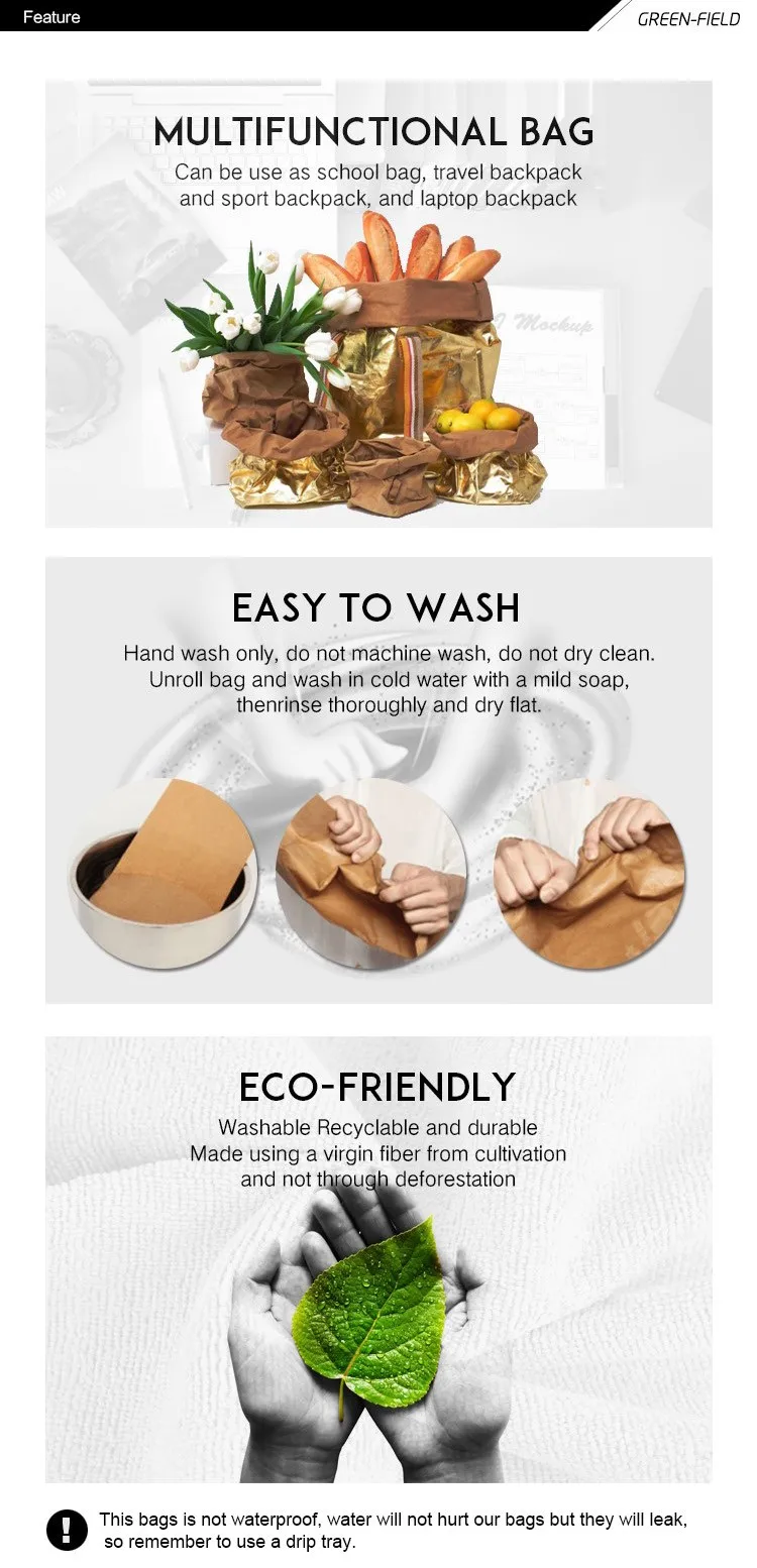 Bag feels like leather and flattens with easy storage. Used for food, laundry, towels, magazines, books, as a plant stand and many others. It is washable, recyclable and very durable. Overall it is a humble design with the aim of blending paper craft into daily life. They can easily blend into any type of interior space.