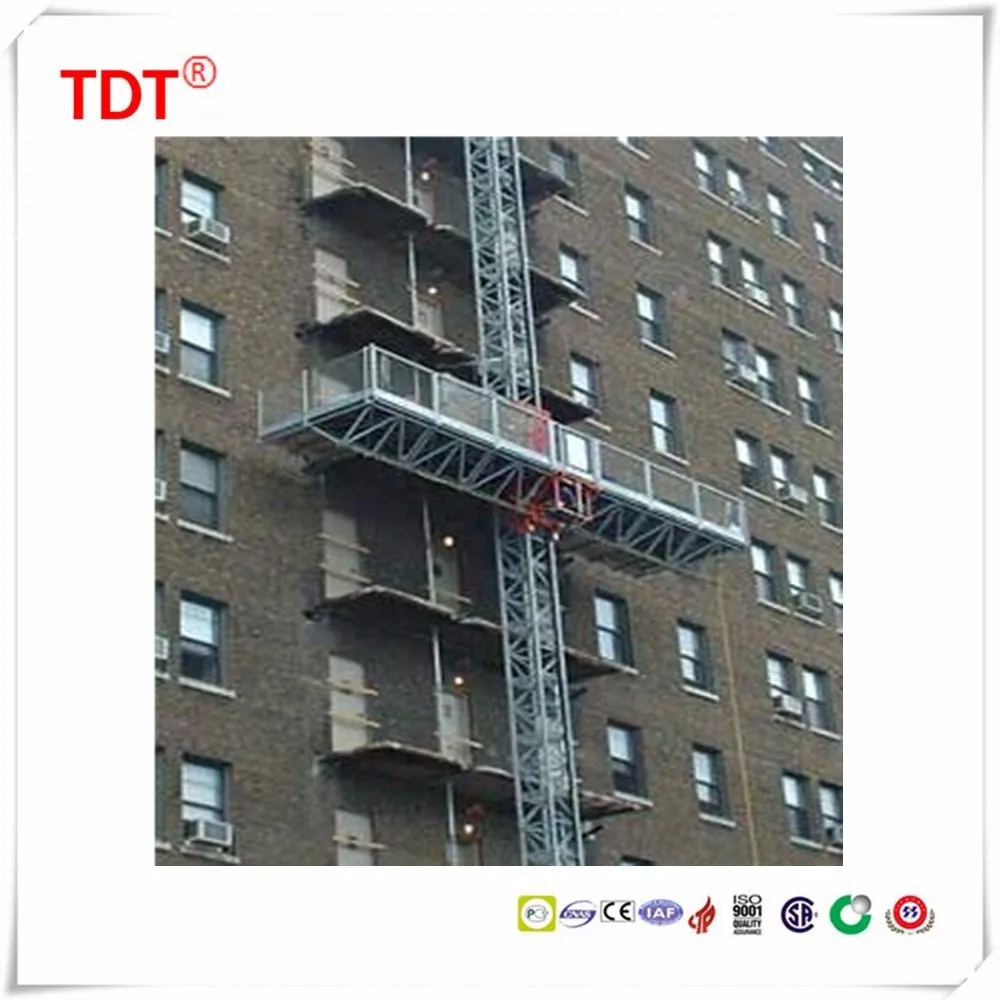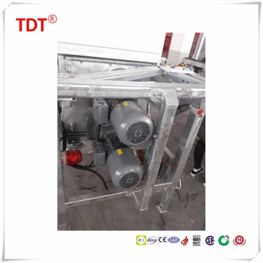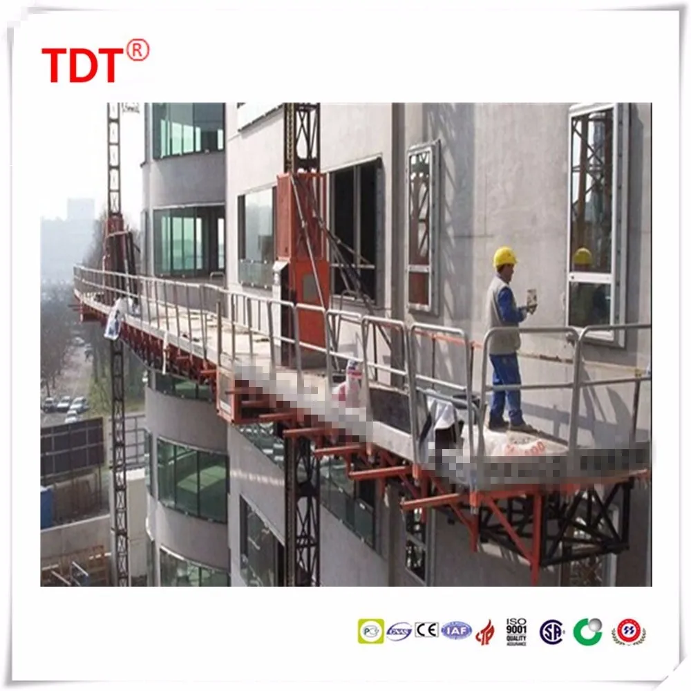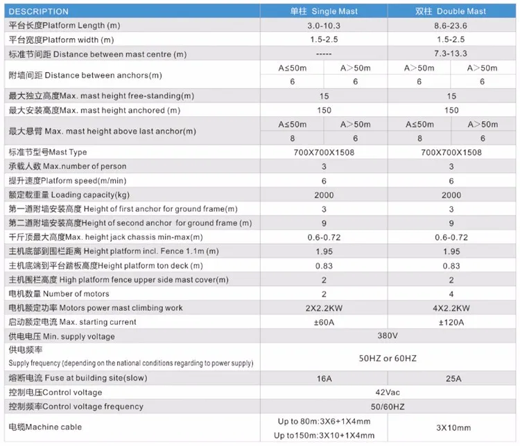 SCP type construction platform/mast climber works with the same driving principle with the building hoist. Its main parts can be interchanged with building hoist such as mast sections,rack, pinion, reducing device and so on.