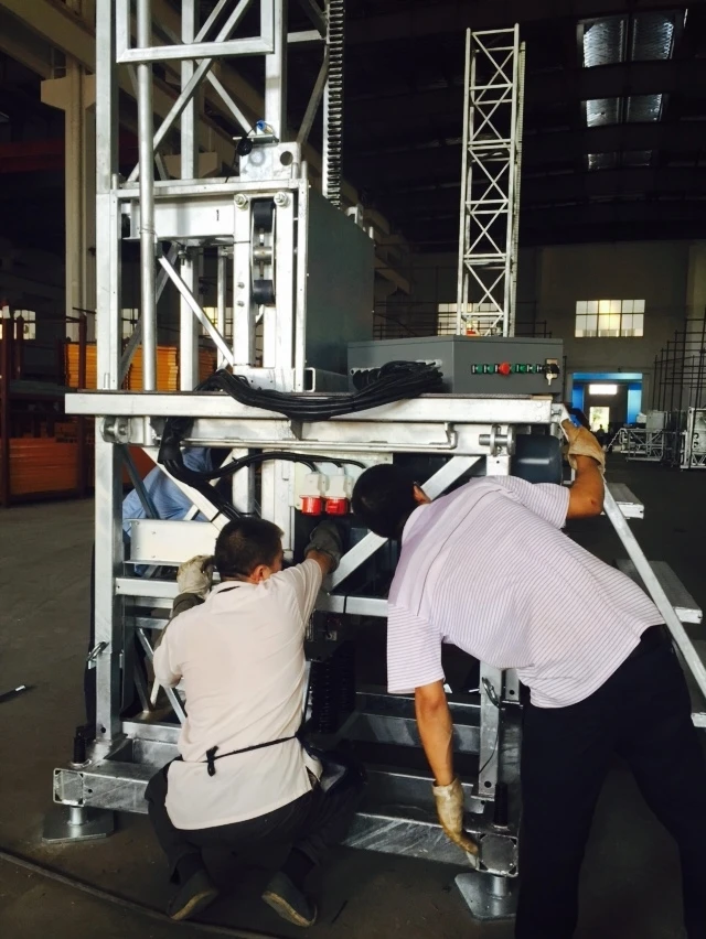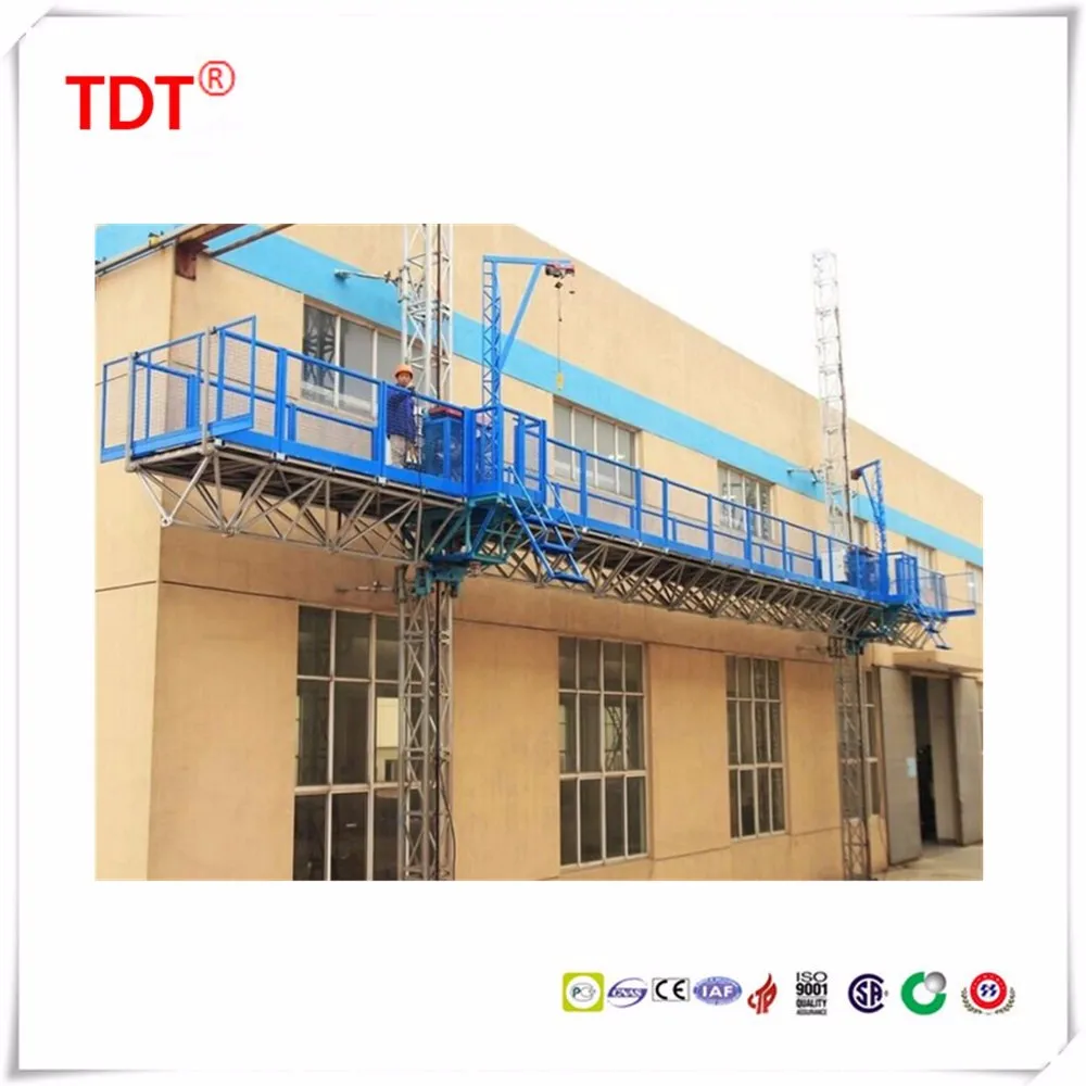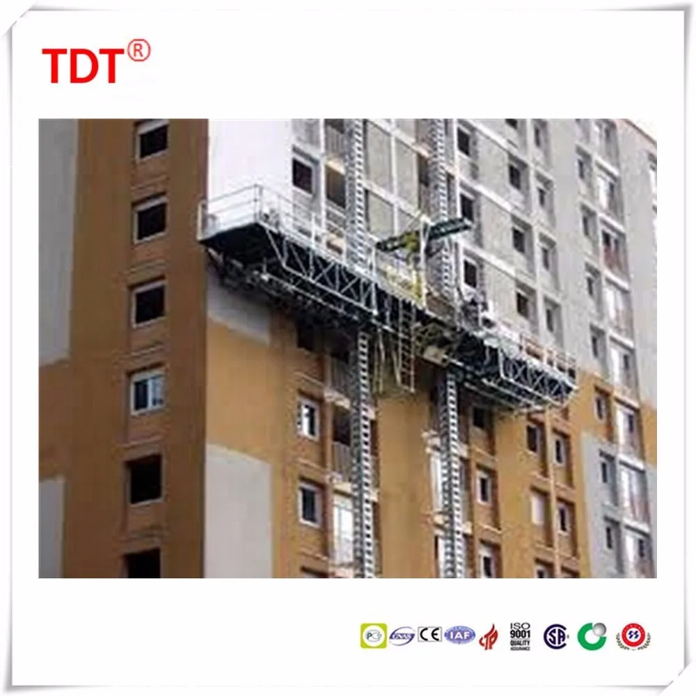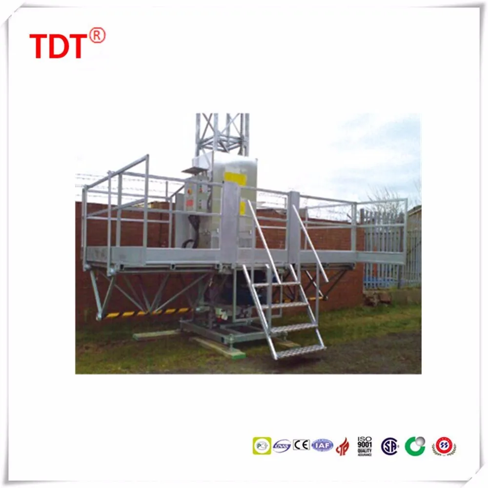 SCP type construction platform/mast climber works with the same driving principle with the building hoist. Its main parts can be interchanged with building hoist such as mast sections,rack, pinion, reducing device and so on.