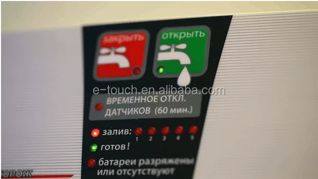 This Tactile Emobssed Key Custom Control Panels New Membrane Switch is used for a electronically operated faucet, the led will be light after connect the power, when press the button, the tap will be open and water comes out, if the water overflows onto the floor, the membrane switch will control to close the tap, the membrane switch is very famous in Europe markets.