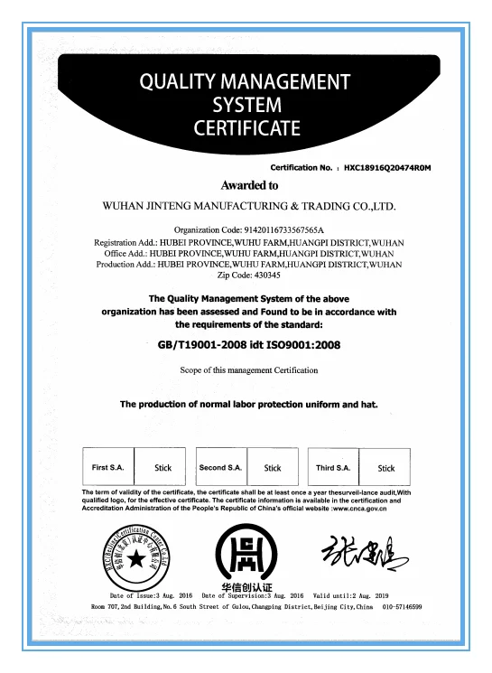 WUHAN JINTENG MANUFACTURING & TRADING CO.,LTD was founded in January 10, 2002, which is a specialized manufacturer for military & police garments and outdoor protective products.