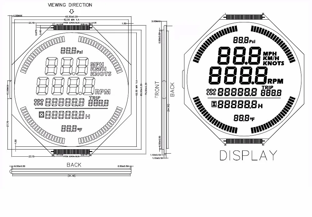 HTN  round lcd screenmonochrome lcd  for Instrumentation