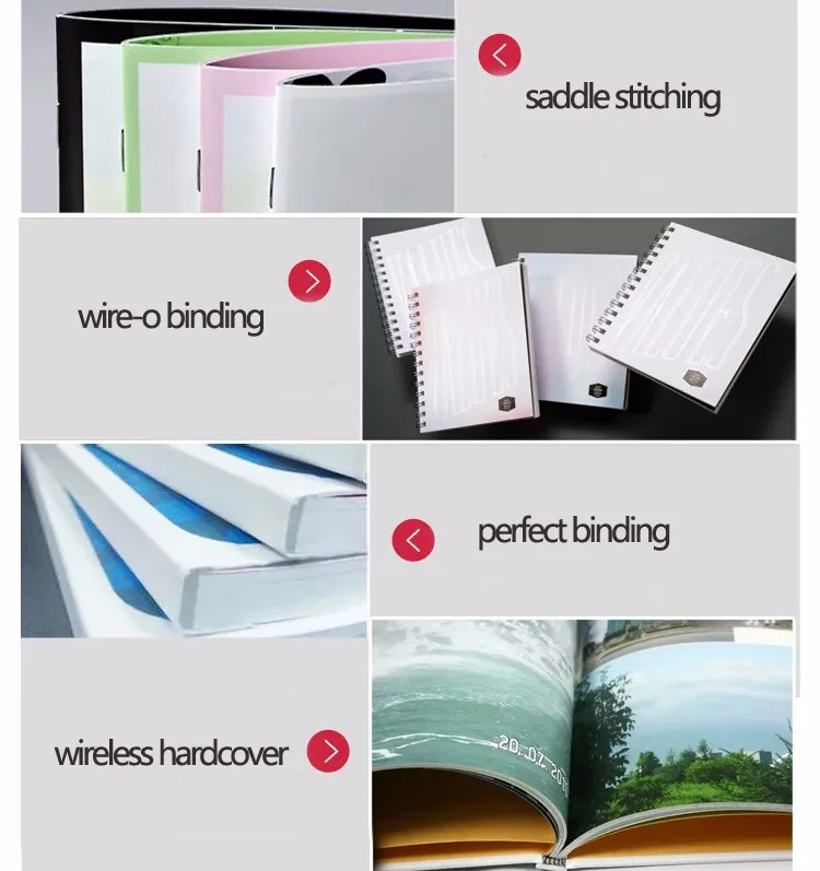 You should choose the binding way according to your book pages, paper thickness, and usage etc. If you are not sure about which method is the best, then just contact me for suggestions !