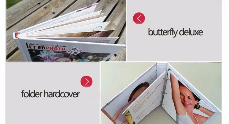 Sewing hardcover; butterfly deluxe and folder hardcover are high end book binding methods.