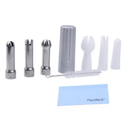 It's time to take the hassle out of creating the perfect toppings. With the three decorating tips you can choose between cross, lotus and plum blossom designs. When you are finished, our homemade cream whipper is a breeze to clean. Just rinse the canister and use the small brush to clean the tips and other small parts.
