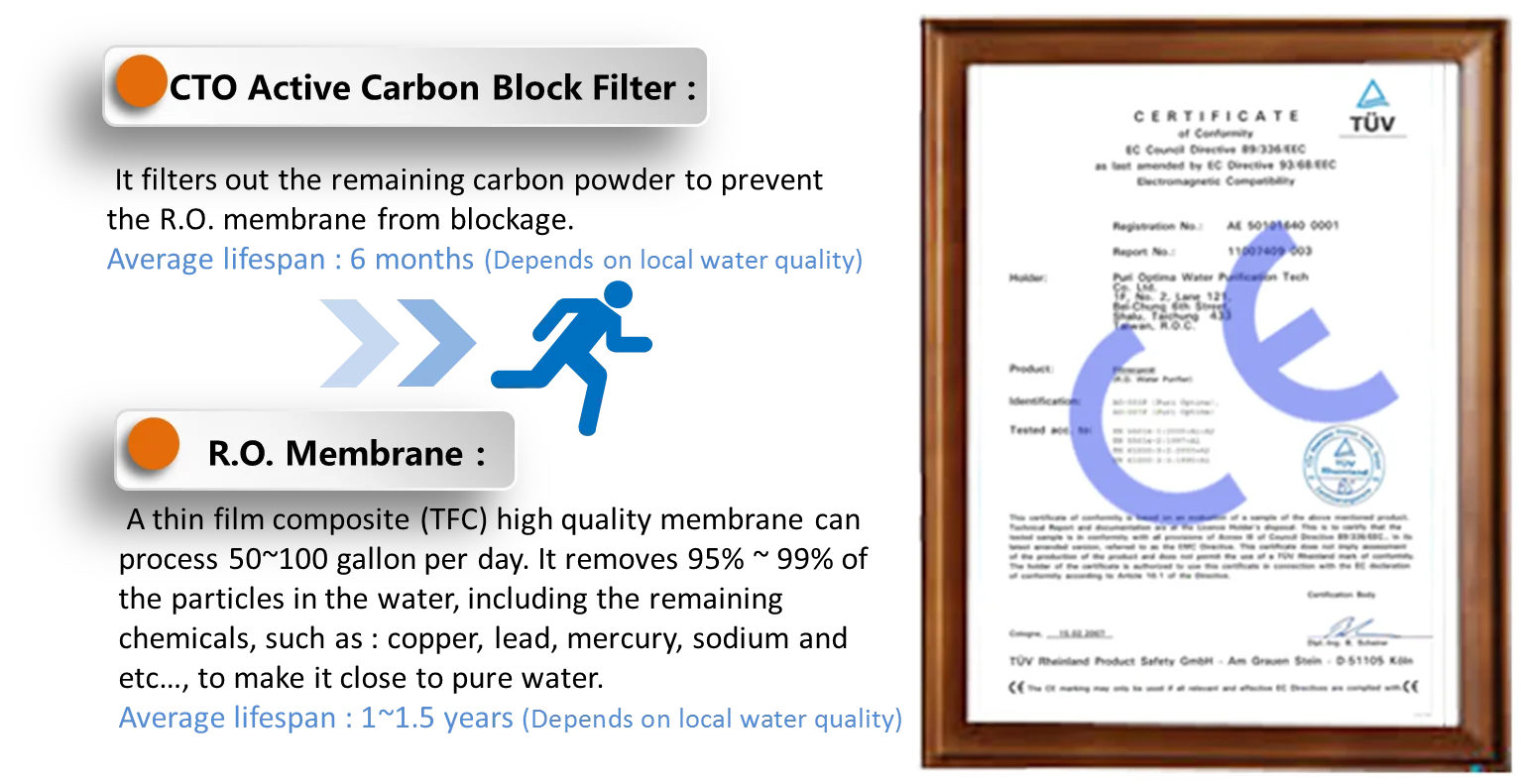 Reverse Osmosis (R.O.) is recognized as one of the best available technologies for producing best quality drinking water. Our household R.O. system provides you safe and pure water by using Reverse Osmosis Technology. They're designed perfectly fitting under your sink and also producing healthy great-tasting water for you!