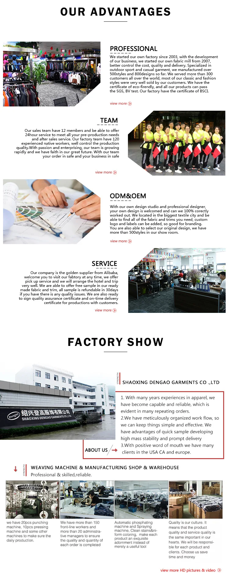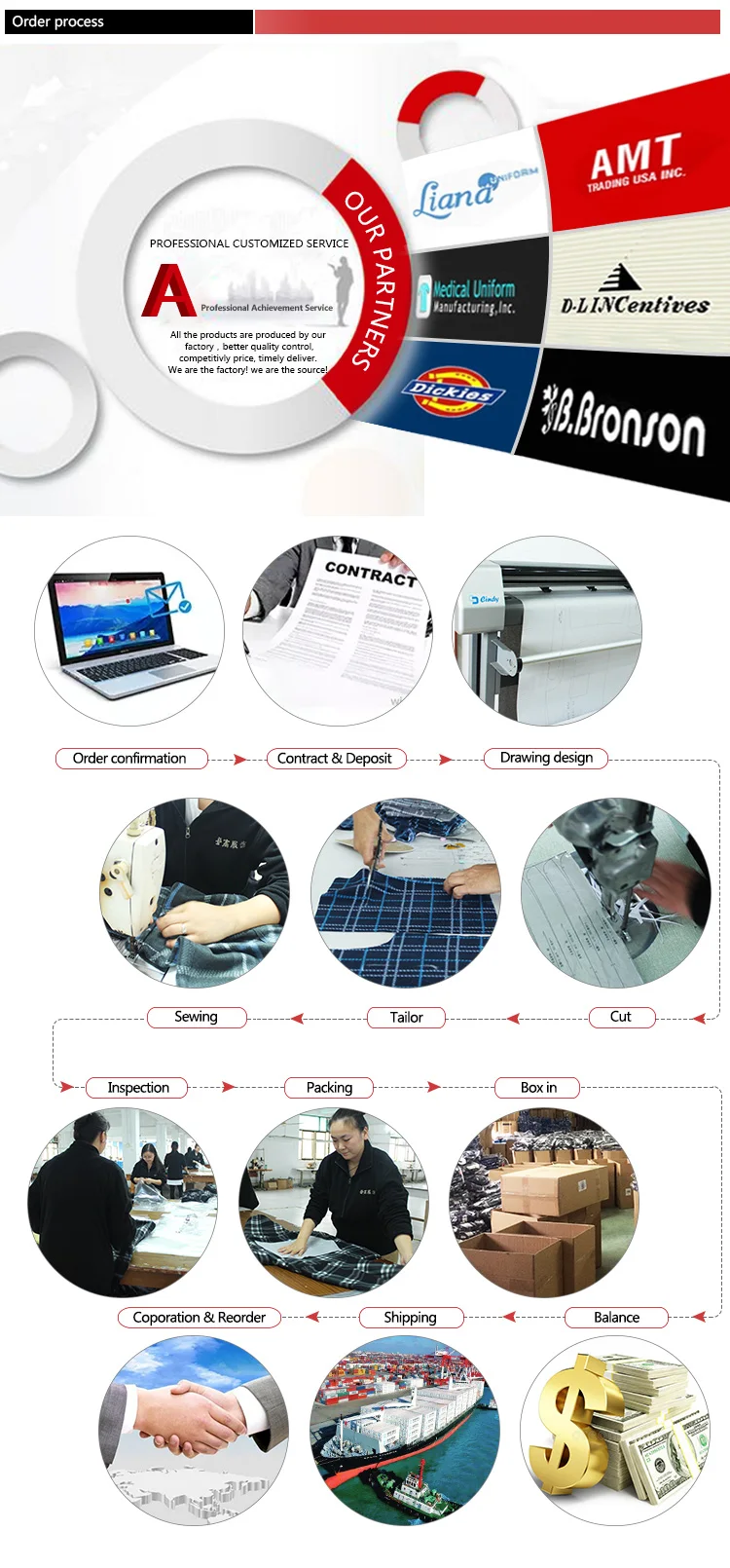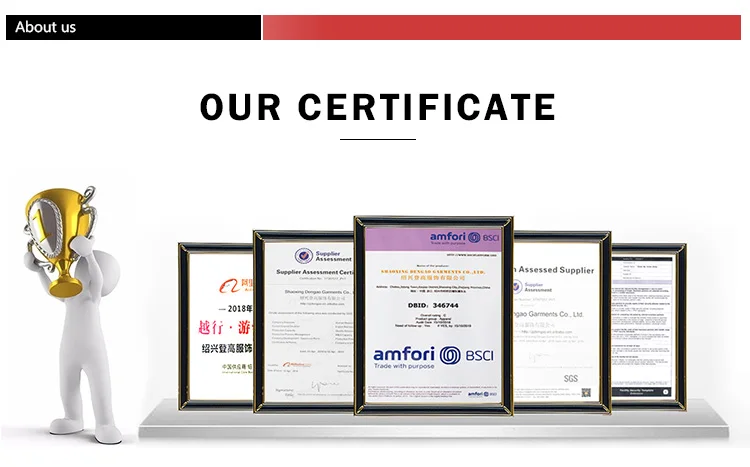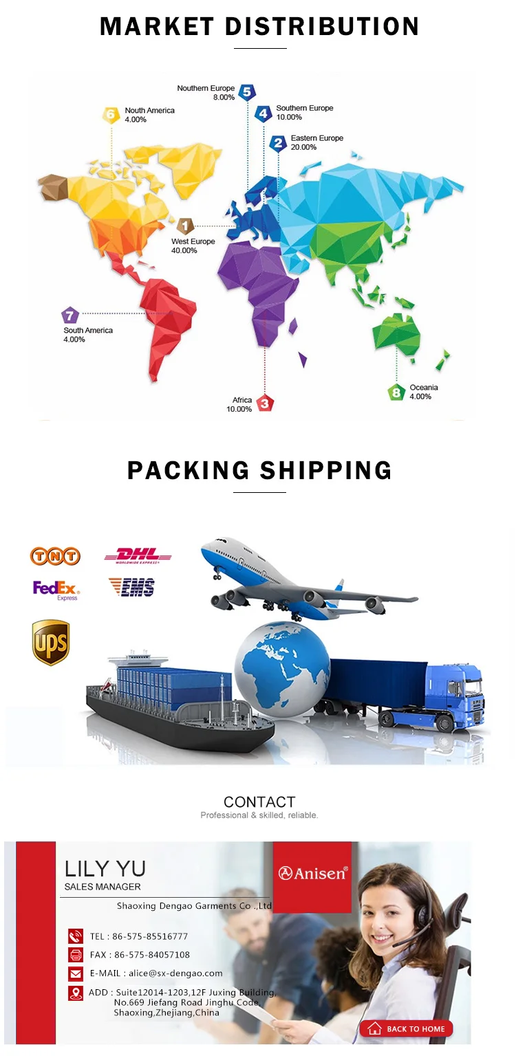 | A: | If you have your own design, we will according to you design to make. If you don’t have the design, you can tell us your requirement, we can offer you some sample clothes to check. Or you can design your own sample. |