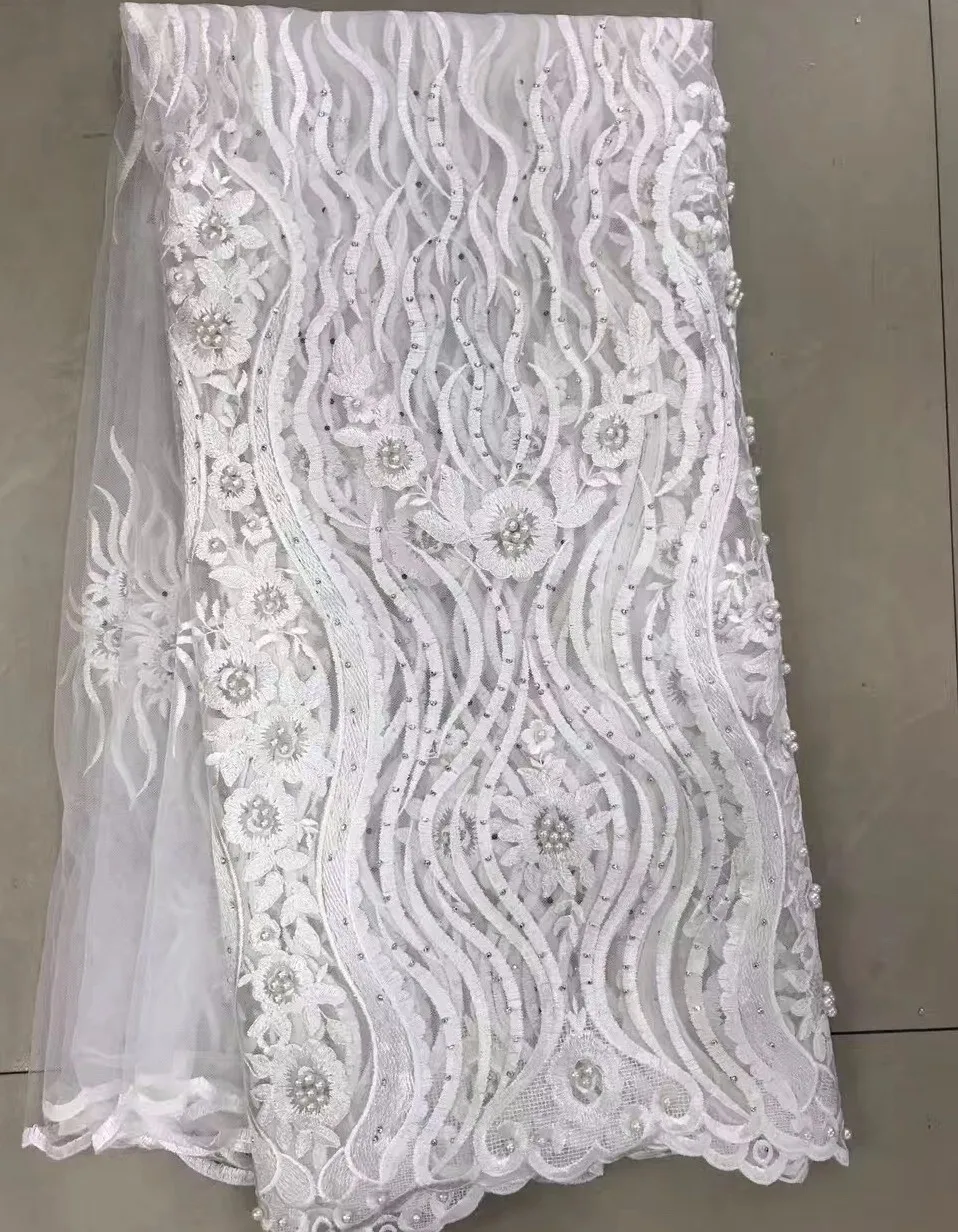 TS44-2 hot sale fabric good quality beaded white lace fabric net embroidered french net lace for wedding