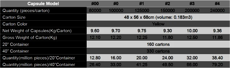 A: The lead time depends on the order size and the customization degree of the order. Usually an order for 5 million pieces of capsules will take 3 weeks from production to shipment.