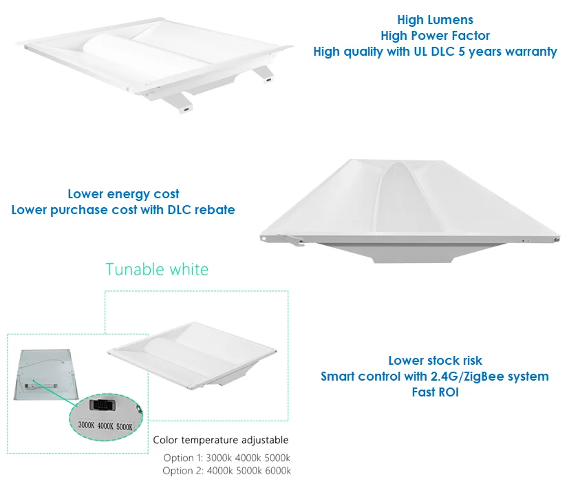 DLC 600*600MM 1200*600MM 40w troffer 130-150Lm/w led panel light retrofit 0-10v dimming