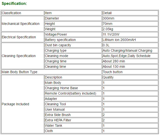 Auto Cleaning,Spot Cleaning, Edge Cleaning, Reservation Cleaing and Mopping Function,