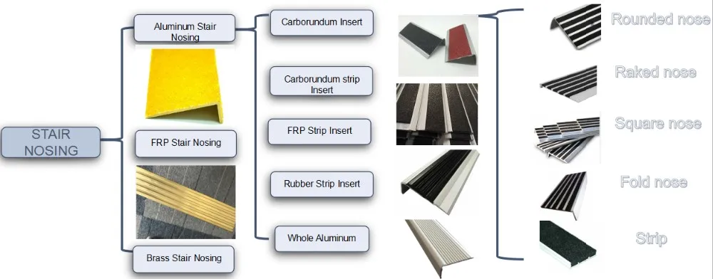 We have more than 50 variety model stair nosings, pls see classification structure as below.
