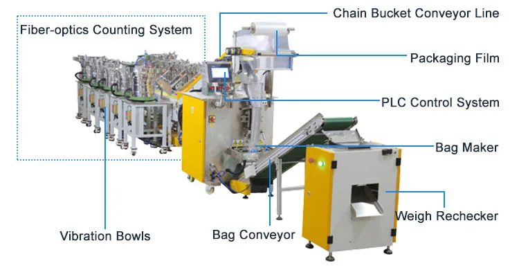 2. Adopting spacking counting and fiber optics re-inspection or completed fiber optics counting, suitable to mixing packaging for1~40 varieties of items.