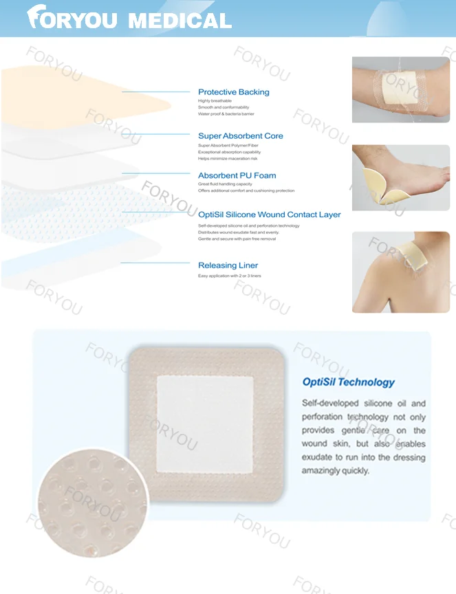 It combined all the benefits and advantages of silver foam dressing and silicone foam dressing, which has excellent performance in exudate management and antibacterial effect.
