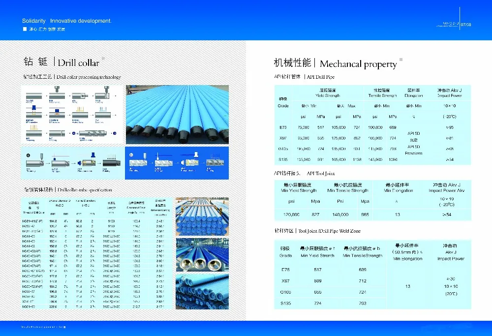 Non-magnetic Drill collars are made from Non-magnetic drill collar materials with low- strength (YDWC20-14) by combining a proprietary chemical analysis and a rotary hammer forging process with low magnetic permeability excellent machine ability.