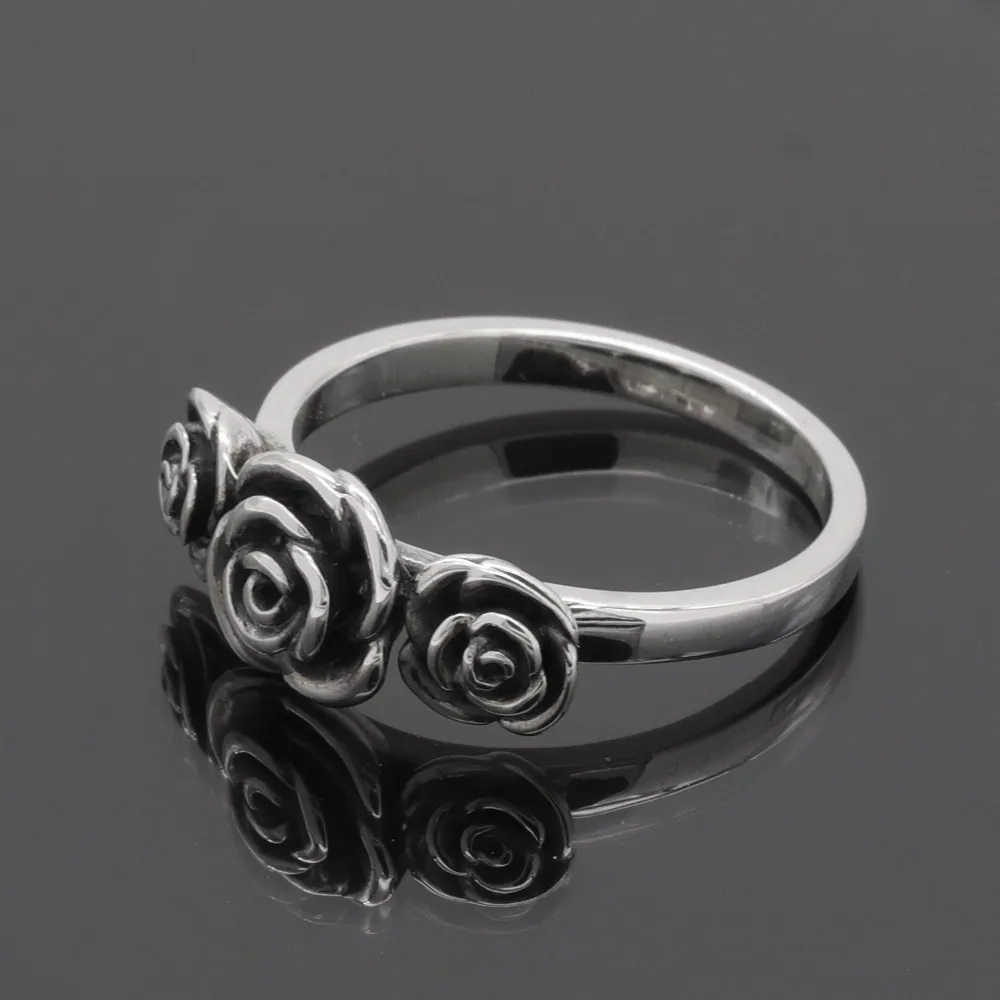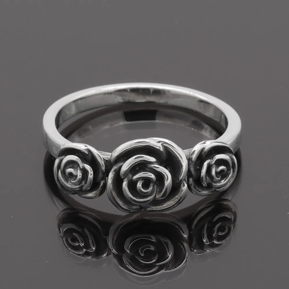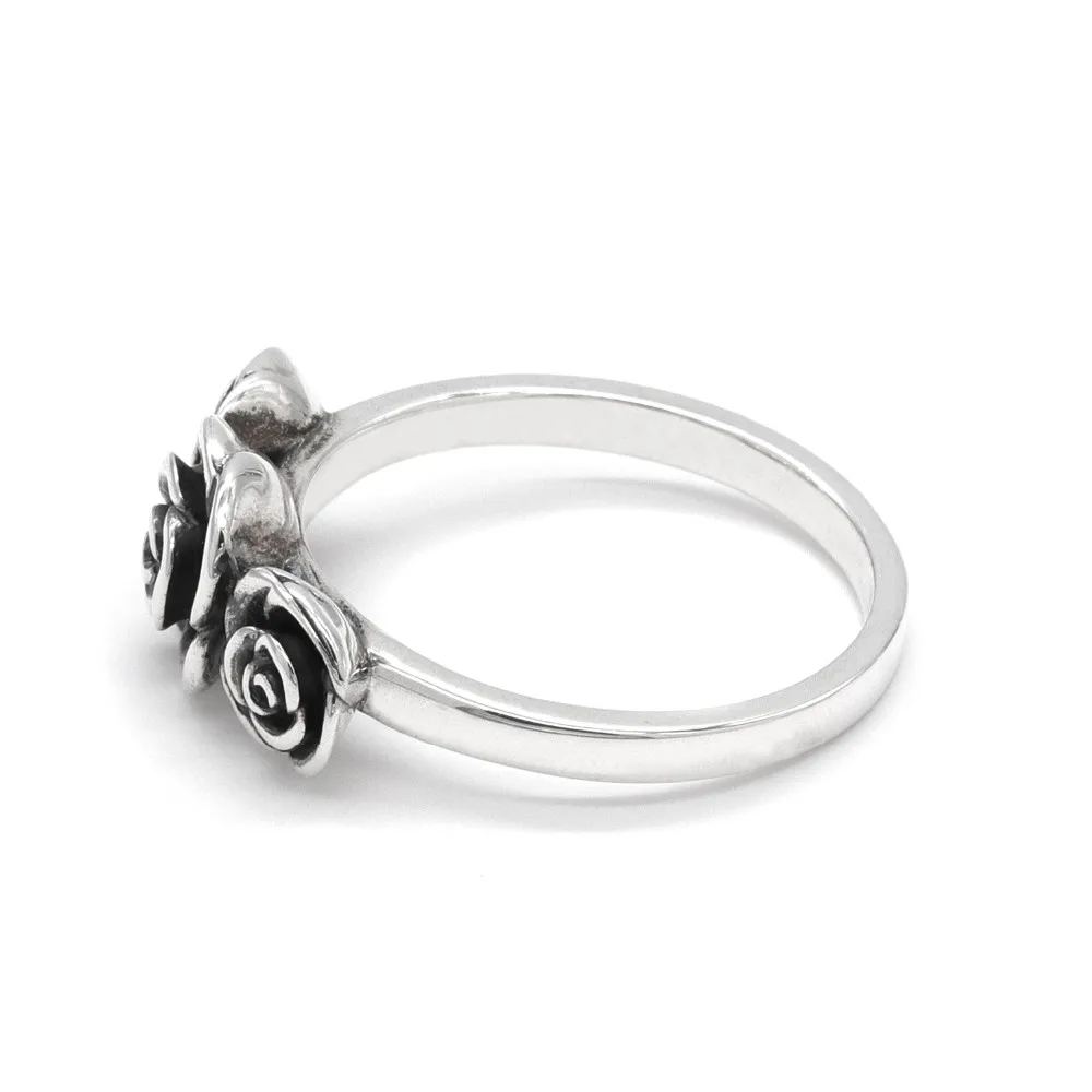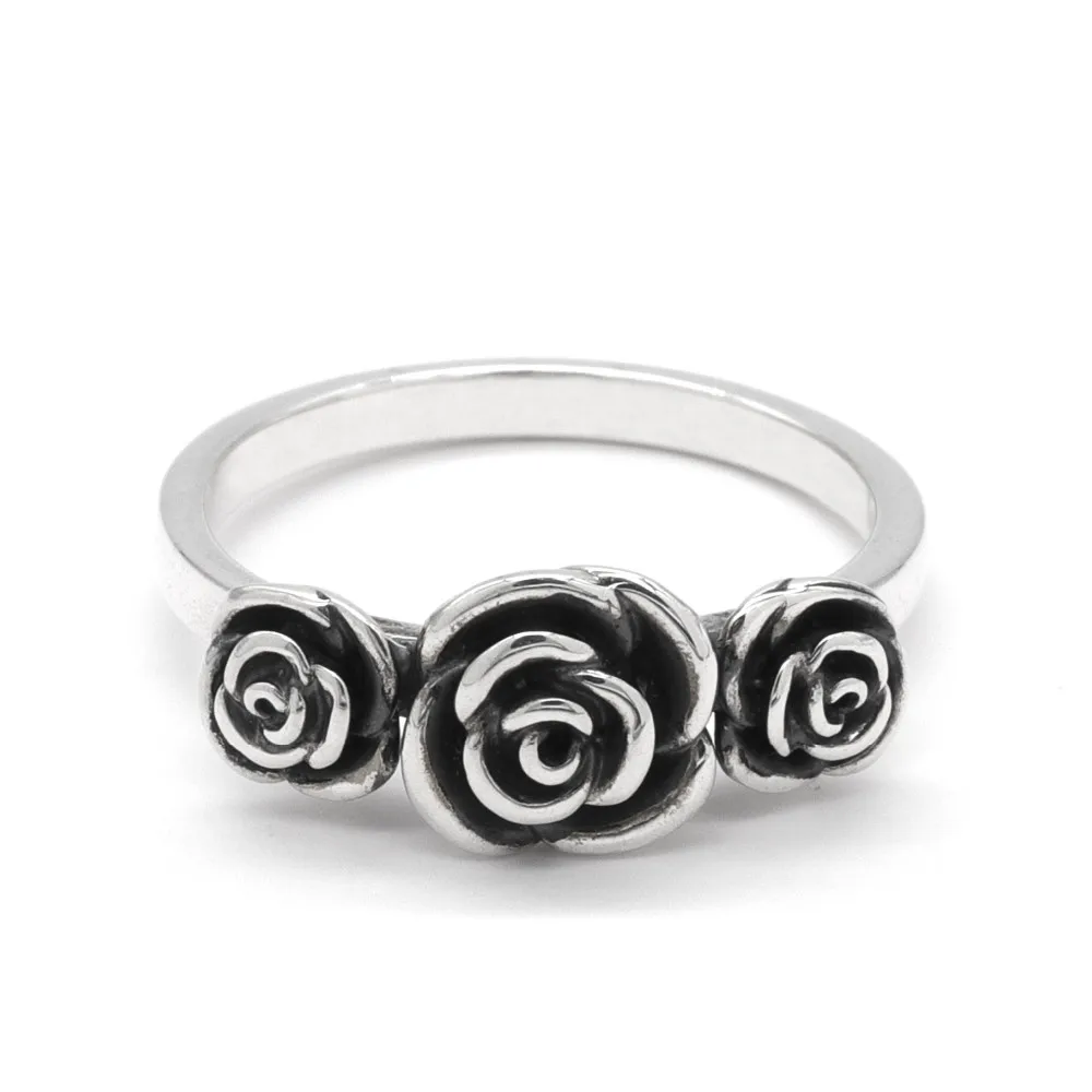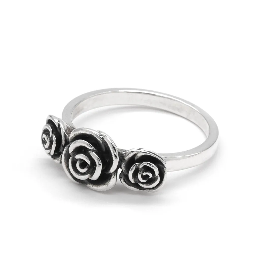 A classical emblem of passion and romance, these beautifully crafted three roses ring shine in sterling silver