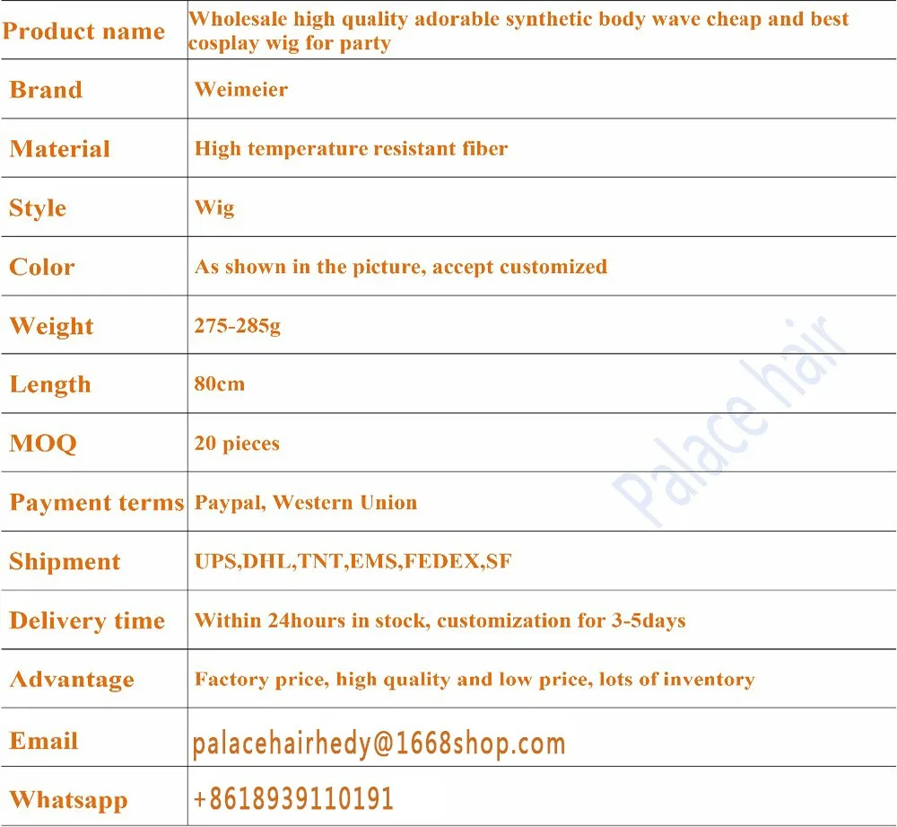 Wholesale high quality Fiber synthetic body wave cheap and best cosplay wig for party