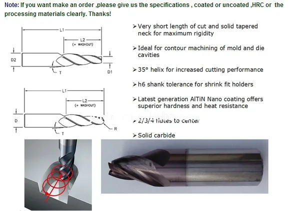 4 Flutes Long Flute Tungsten Solid carbide milling cutter with AlSiN Coating