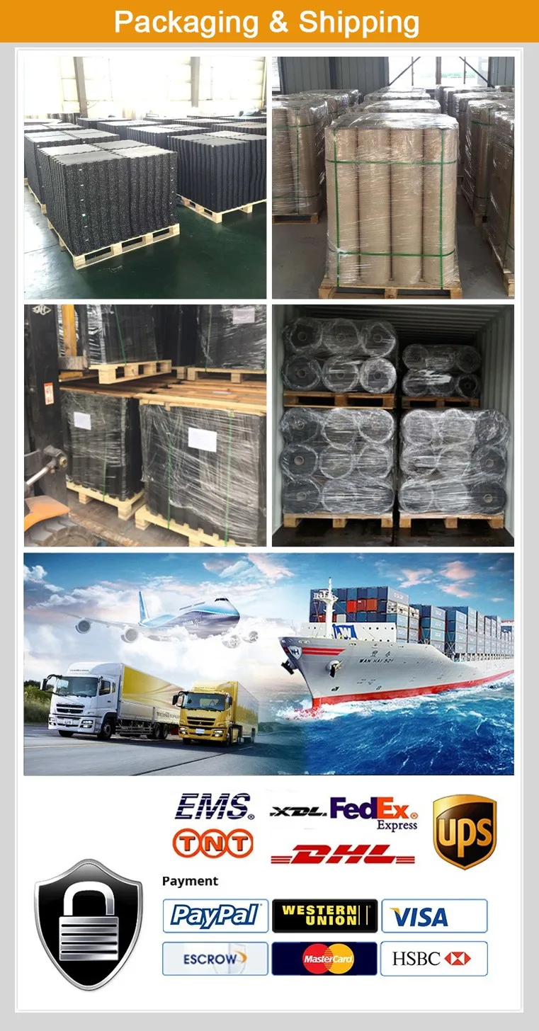 Black anti slip moisture proof shock absorption underlay rubber flooring mat under floor mat