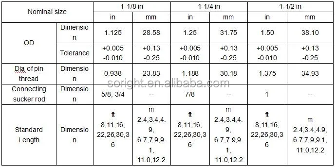 The mechanical properties of polished rods conform to the strength values as follows: