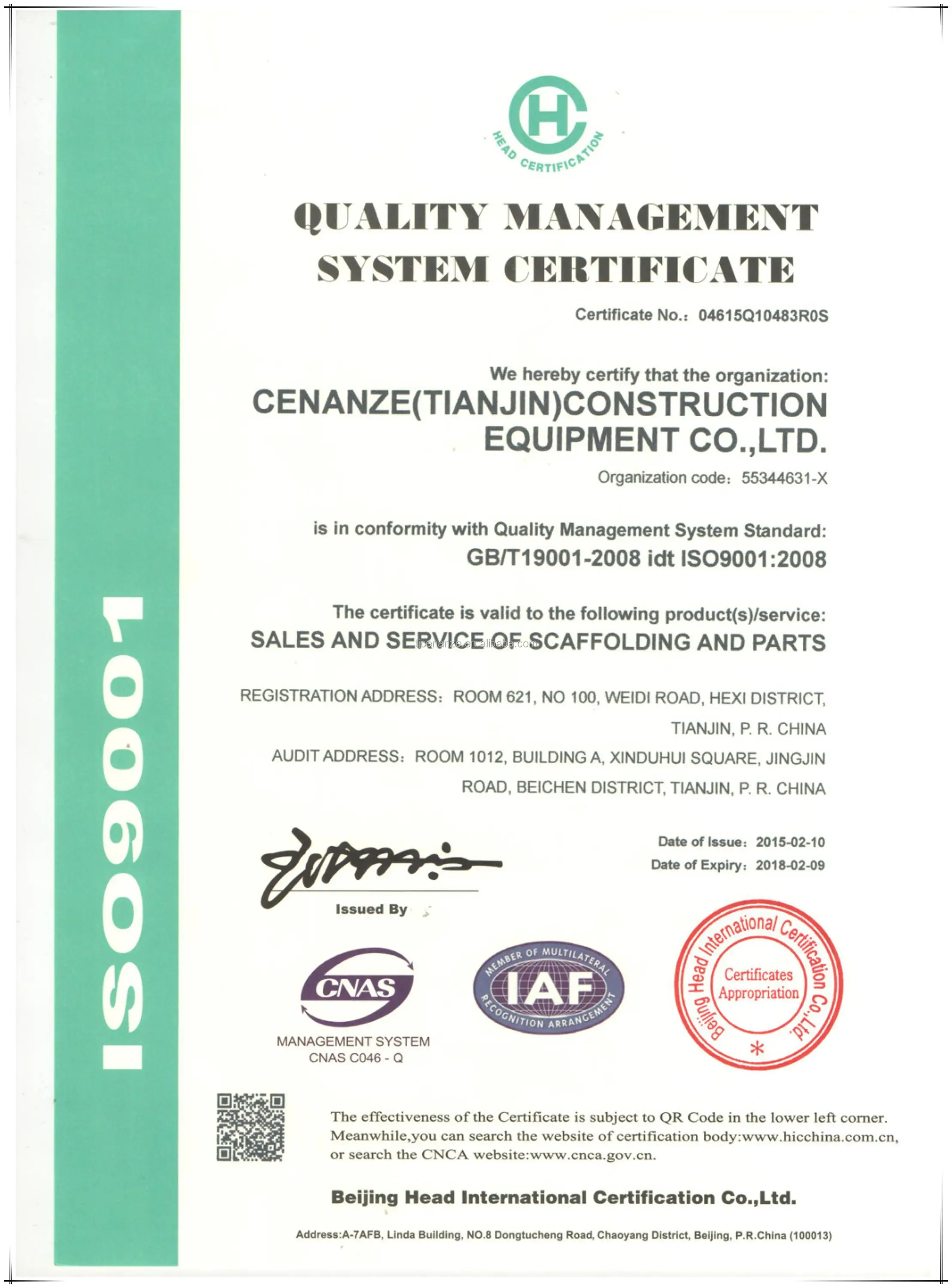 Cenanze (Tianjin) Construction Equipment Co., Ltd began to deal with construction scaffolding products in August, 2008.