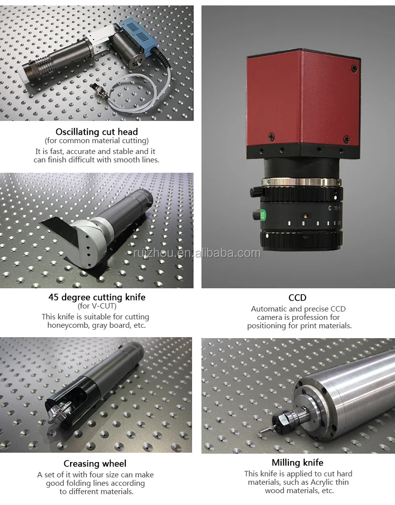 | Knifes | Oscillating blade head, Milling Cutter, Hobbing Cutter, Creasing Wheel |