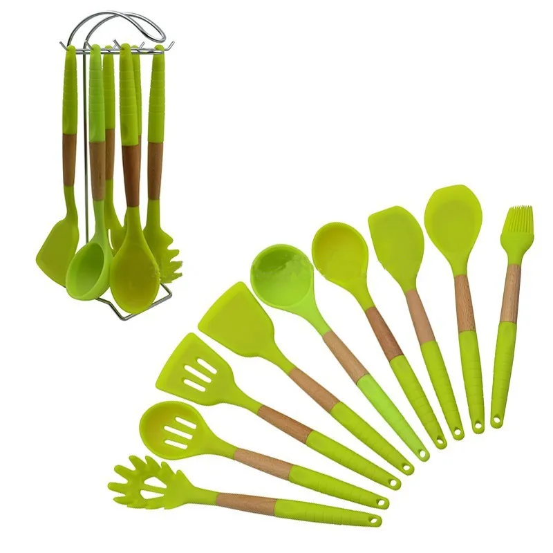 New design 9pcs beech wood handle silicone kitchen utensils