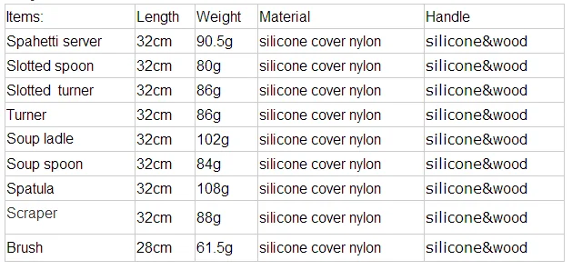 *wood kitchen utensils is Non-stick,odorless and durable *Heat-resistant up to 210 degree *Unique soft grip handles for less hand fatigue *Hole in handle for easy hanging *Light weight makes kitchen utensils easy to use *wood kitchen utensils can various designs and colors are available *wood kitchen utensisl logo can be printed as customers’ drawings and samples *Holder can be used to hang kitchen utensils, you can open, use in grater *These nylon kitchen tools are our latest and best selling product. *A very good gift especially for promotion, commerce or friends etc. It's so elegant and luxury to send this kind of product as a gift to others. * Our kitchen utensils can be designed into different set, from 3 pcs to 10 pcs or even more pcs just as your requirement