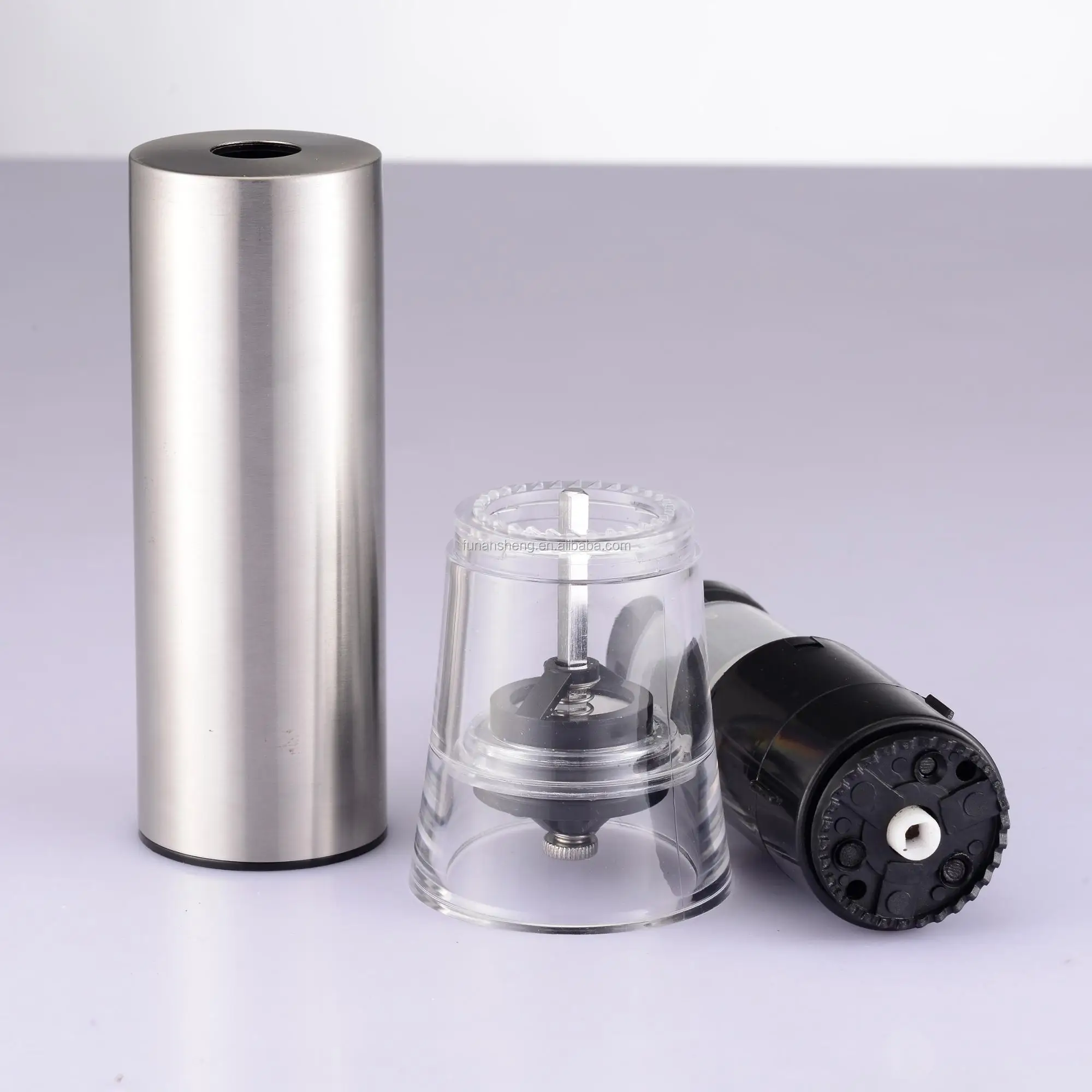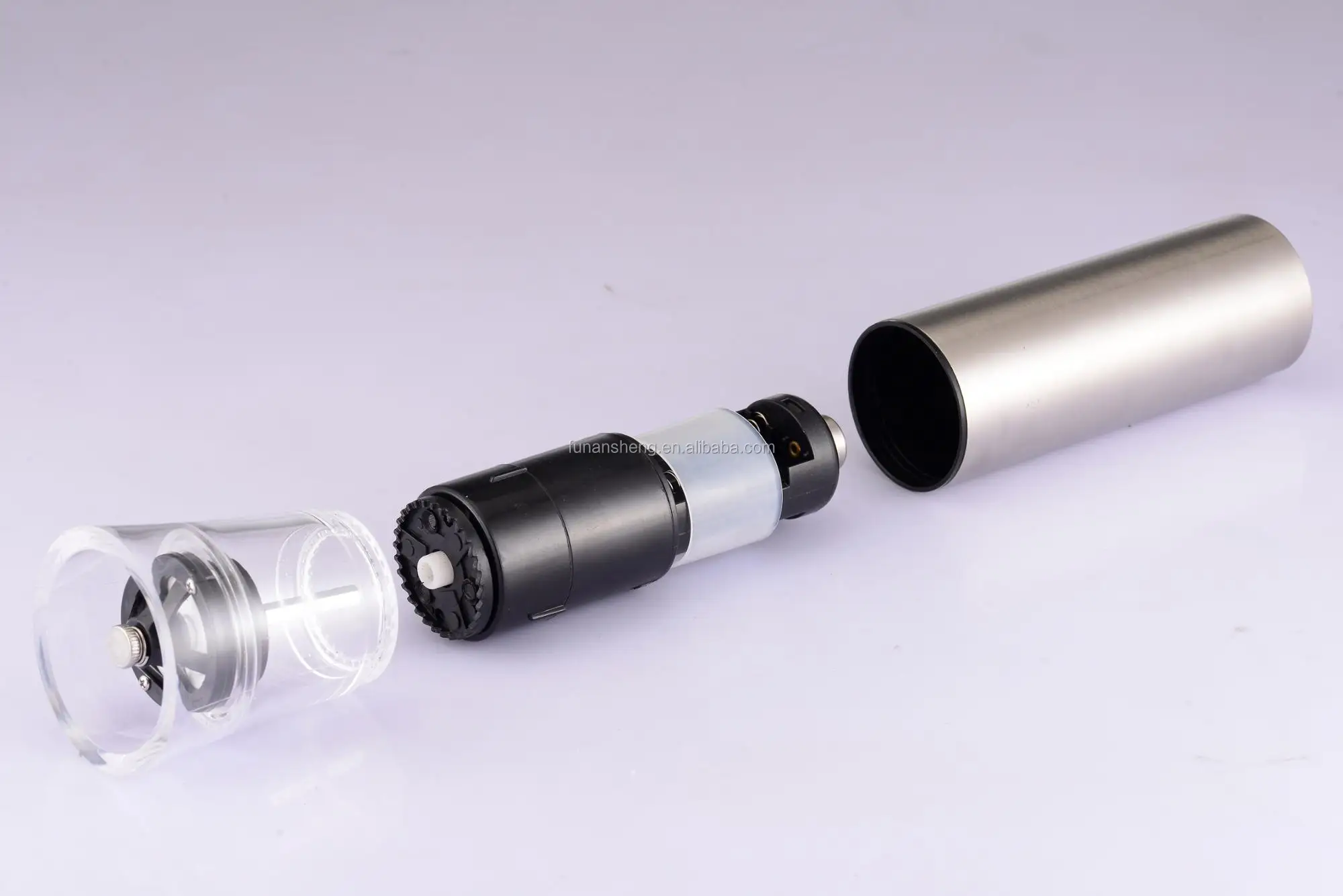 Material | Grinder:Ceramic. Inner Part: ABS. Spice Container:Acrylic. Batteries:4pcs x AA(not inc.) Casing: Polished Stainless Steel(201). WITHOUT LIGHT MANUAL & ELECTRIC STYLE |